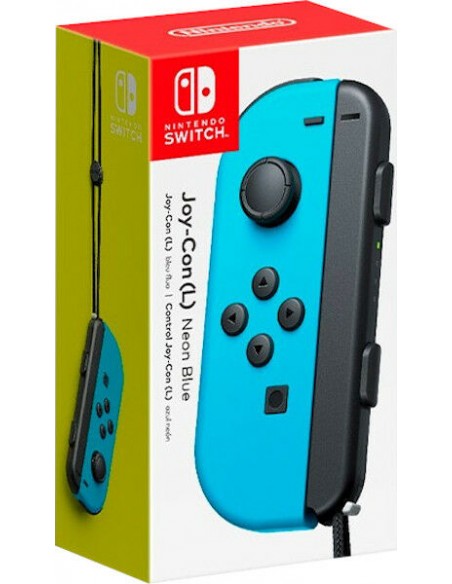 Mando Joy-Con Izquierdo Azul con correa. Según el juego, se pueden usar varios Joy-Con para jugar en una consola Nintendo Switch con más jugadores. El Joy-Con es un mando remoto para Nintendo Switch