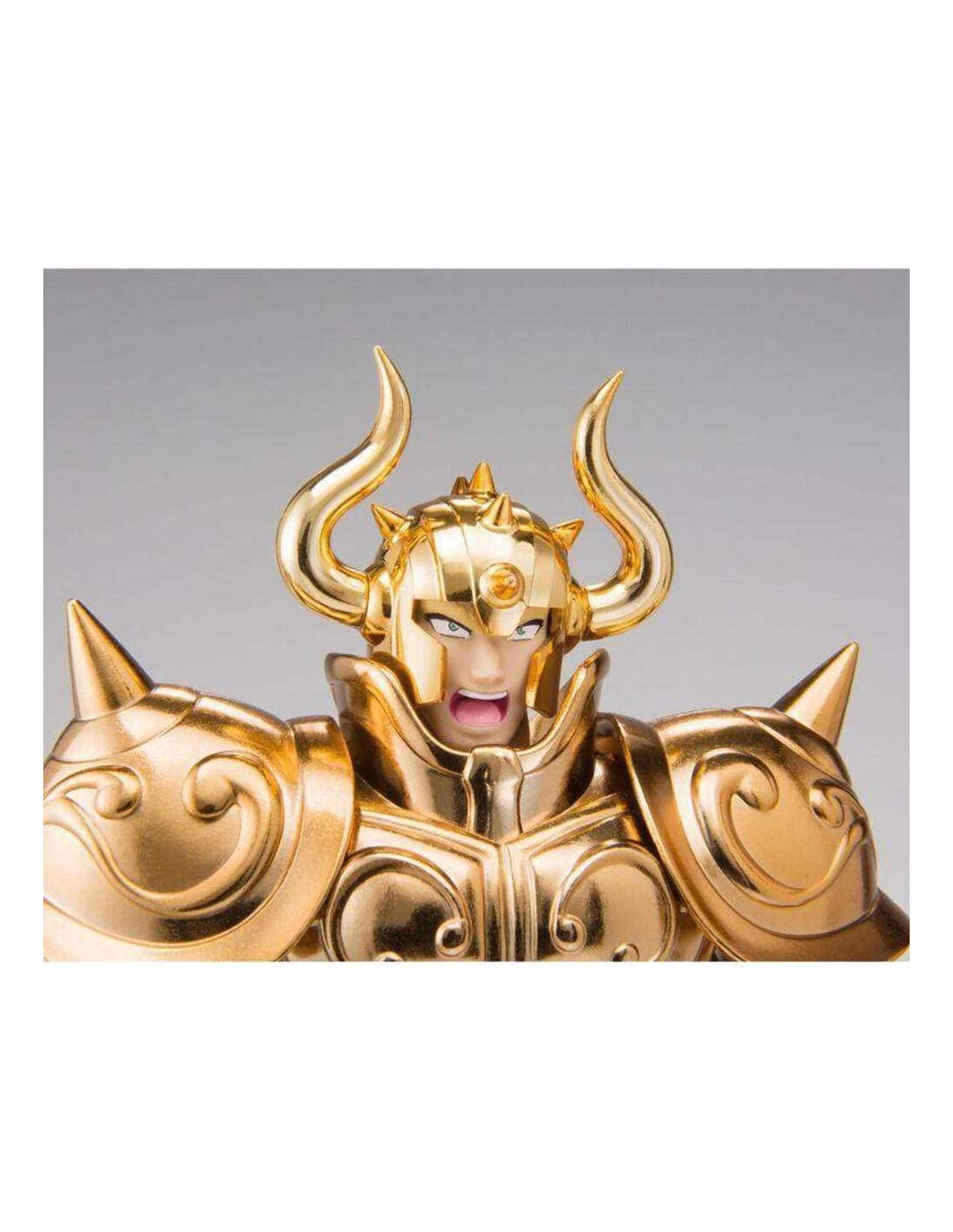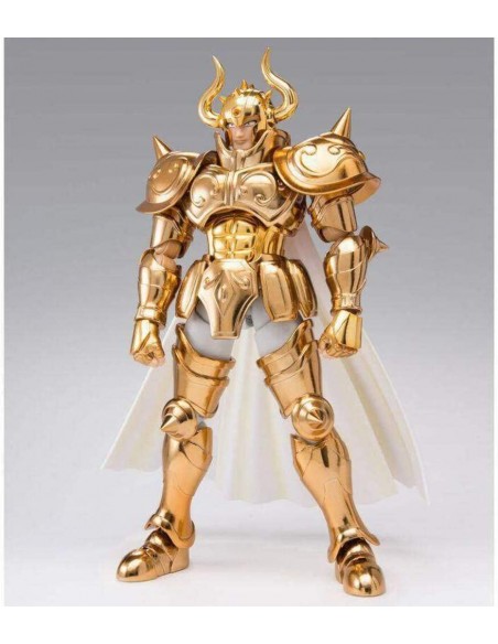 Tamashii Nations dentro de la serie Myth Cloth EX nos ofrece la figura de Taurus Aldebaran basada en la serie de anime "Saint Seiya". Esta figura de 19 cm incluye un conjunto de armadura de tela, piezas de armadura para montar el objeto del Toro, una parte de capa, partes de brazos para mostrarlo con ellos cruzados. Además se complementa con x4 caras intercambiables, x5 pares de manos intercambiables, una pieza de cuerno rota intercambiables y una base soporte para exposición.