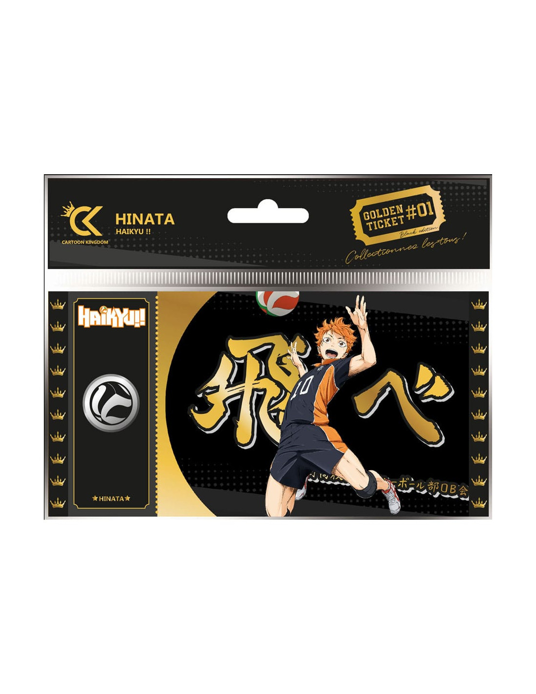 ¡Los Golden Tickets son la última locura coleccionable para los fans del anime! En la exclusiva Black Edition, cada entrada está numerada y una vez que un diseño se agote, no será reproducido. Hechas de papel de PVC resistente al desgarro y lavable, cada entrada se imprime cuidadosamente en calidad HD y luego se termina con un fino revestimiento de alto brillo. Este estuche contiene 1 Ticket, cada una con unas dimensiones aproximadas de 150 x 75 mm y viene en su propio embalaje de papel de aluminio impreso con tarjeta colgante.