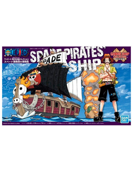 Bandai Hobby presenta dentro de la colección Grand Ship Collection el model kit para montar el barco Spade Pirate's Ship de la popular serie "One Piece". Este model kit puede ensamblarse sin necesidad de pegamento ni necesita ser pintado. Mide 15 cm de largo.
