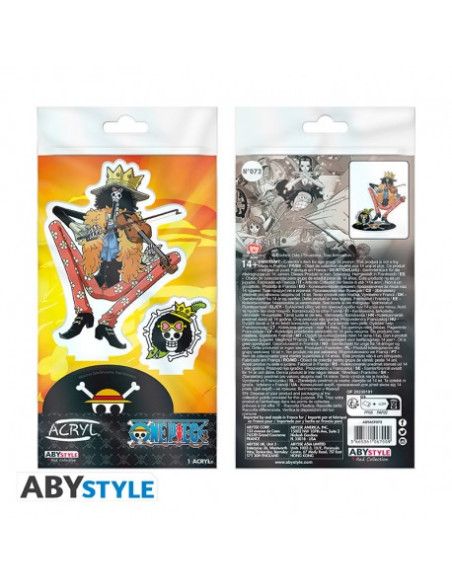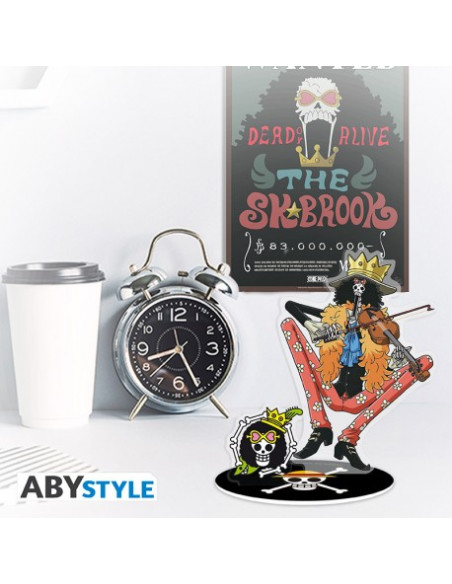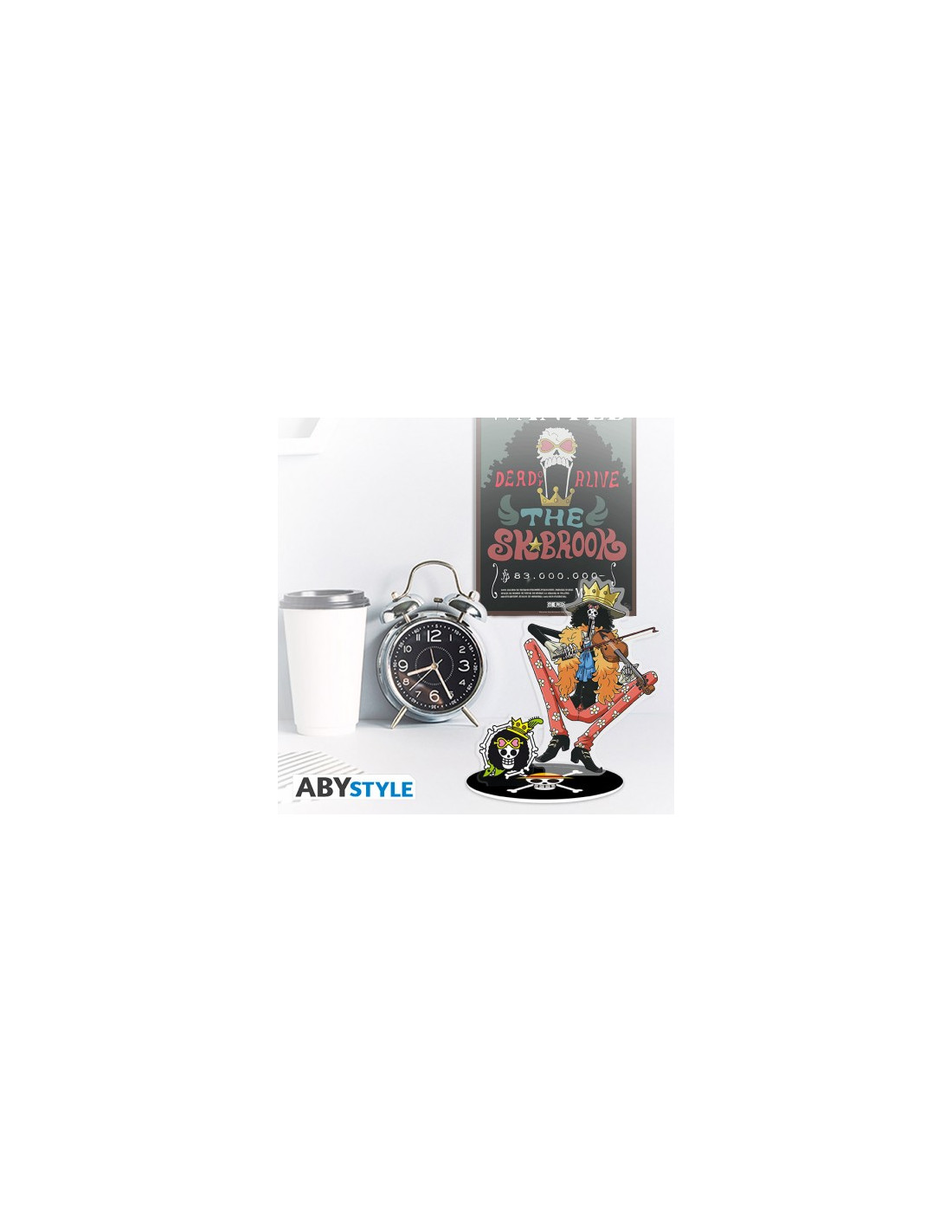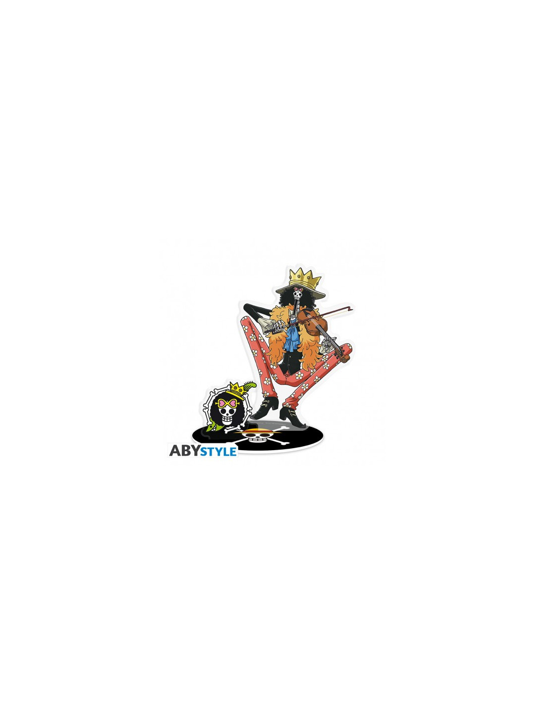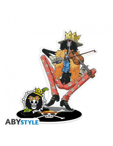 Brook, el músico y segundo espadachín de la tripulación del Sombrero de Paja, está representado en este One Piece Acryl® de ABYstyle. - 3 piezas para montar: personaje, emblema/logotipo y base. - Altura del personaje: aproximadamente 10 cm. - Impresión de alta calidad en acrílico. - Piezas que se separan del tablero impreso. - Artículo 100 % oficial. - Empaque fácil de colgar para una fácil colocación en estanterías y una buena visibilidad del producto.