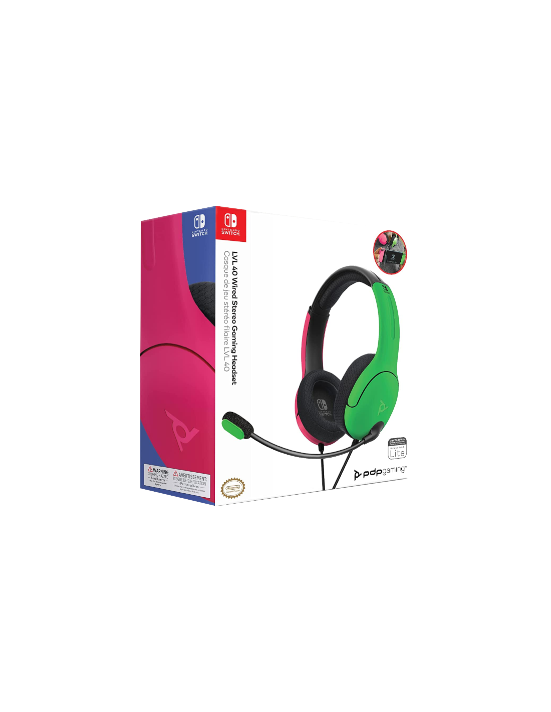 Es hora de subir de nivel tus audífonos con los brillantes auriculares estéreo con cable para juegos PDP LVL40 de neón rosa y verde para Nintendo Switch. La construcción ligera ofrece comodidad duradera ya sea que estés pasando el día en misiones cooperativas o simplemente jugando un partido rápido. Escucha a tus enemigos antes de verlos con los dos potentes controladores de altavoz de 1.575 in. Dale a tu equipo comandos claros a través del micrófono flexible con cancelación de ruido, o gíralo para silenciarlo al instante. Mantén tus ojos en el juego y haz ajustes de audio rápidos con el control de volumen en la oreja, mientras que las almohadillas transpirables para los oídos te ayudan a mantenerte fresco y evitar la fatiga. Combina tus auriculares con los controladores Joy-Con de color rosa neón/verde neón en tu Nintendo Switch. Mantente un paso adelante con los auriculares estéreo con cable LVL40 de neón Splat