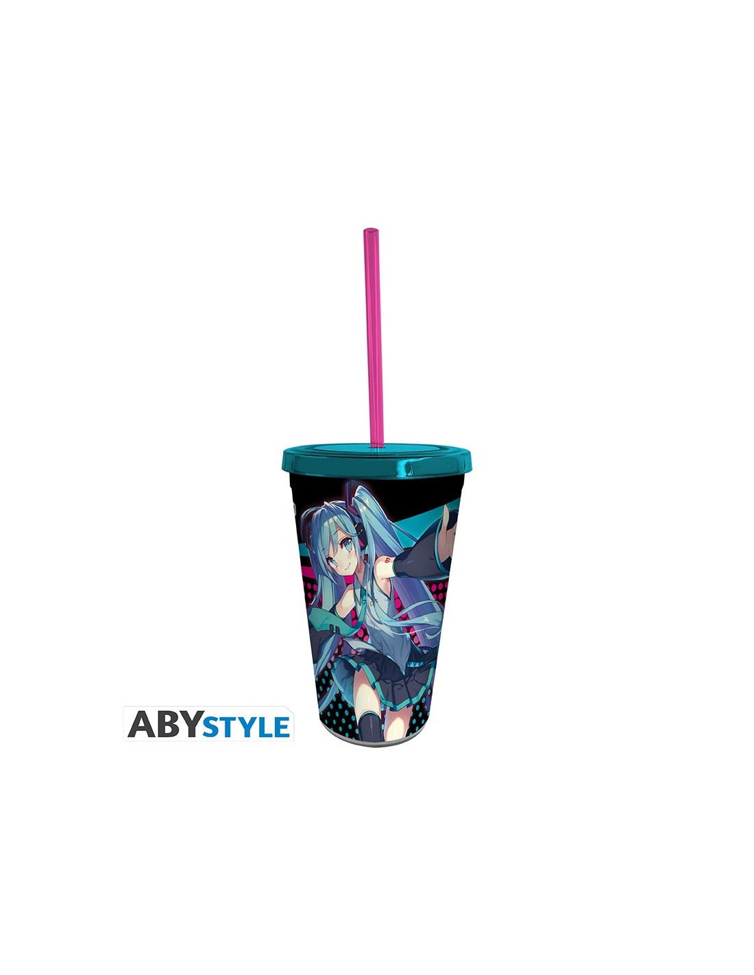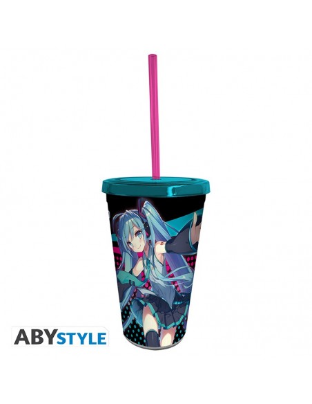 ¡Hatsune Miku nunca te dejará! Pocas cosas pueden convertir una actuación de dinámica a trágica más rápido que una garganta áspera y cuerdas vocales secas. Miku decidió compartir una de las herramientas. Este vaso con pajita de ABYstyle presenta a la diva digital, nunca tendrás que preocuparte de que tus movimientos de baile derramen tu bebida. Es el regalo perfecto para los fanáticos de Hatsune Miku en todas partes.
