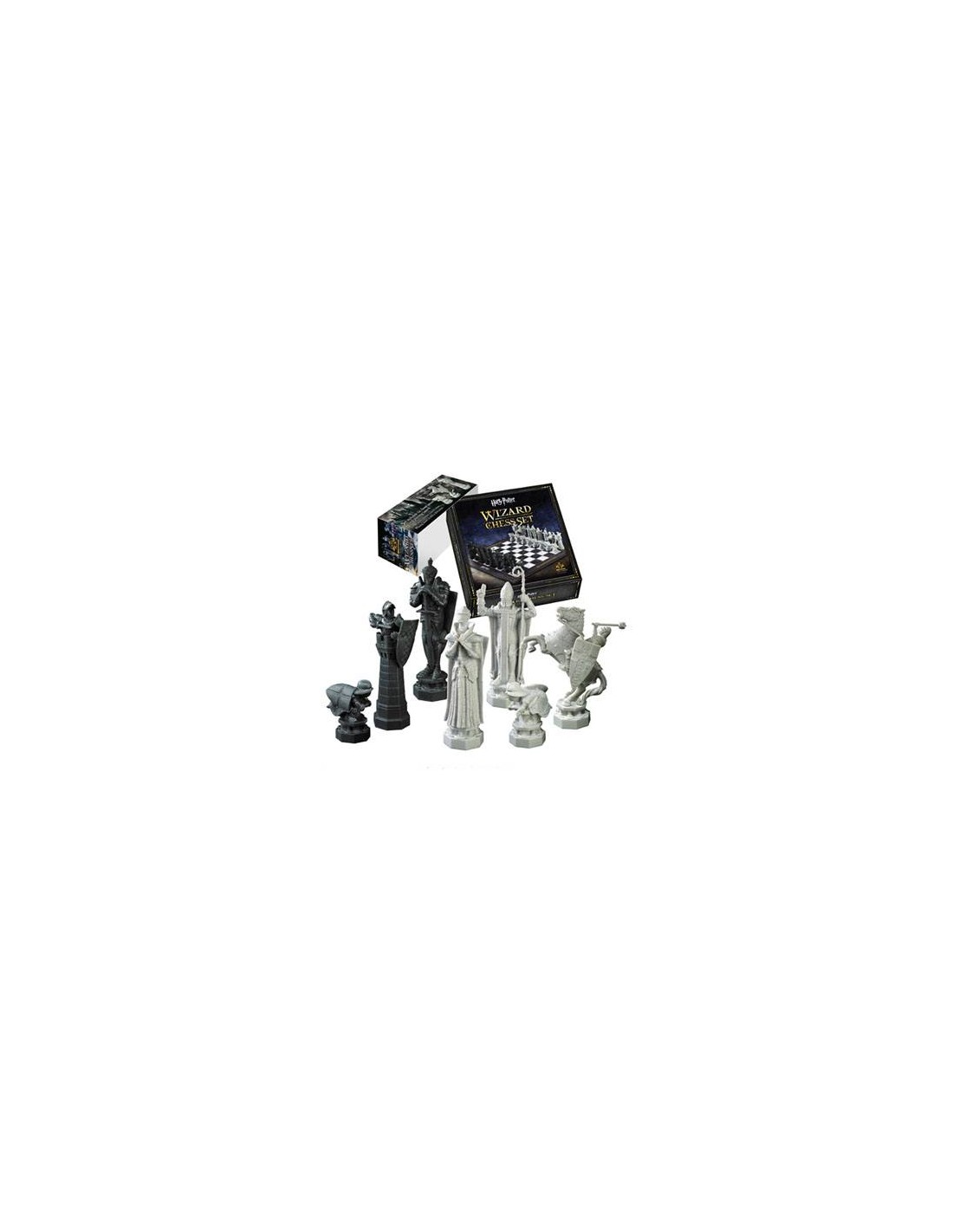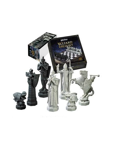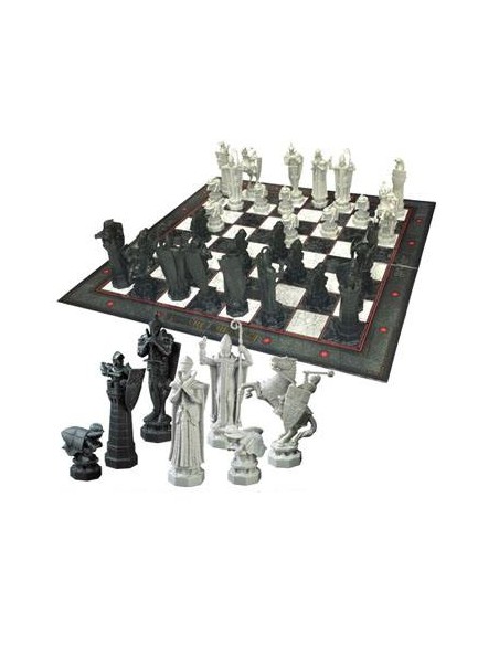 Recreación del tablero de ajedrez de la película Harry Potter y la Piedra Filosofal. Las piezas de ajedrez 32 miden de 5 a 12 cm. El conjunto se completa con un tablero de 47 x 47 cm.