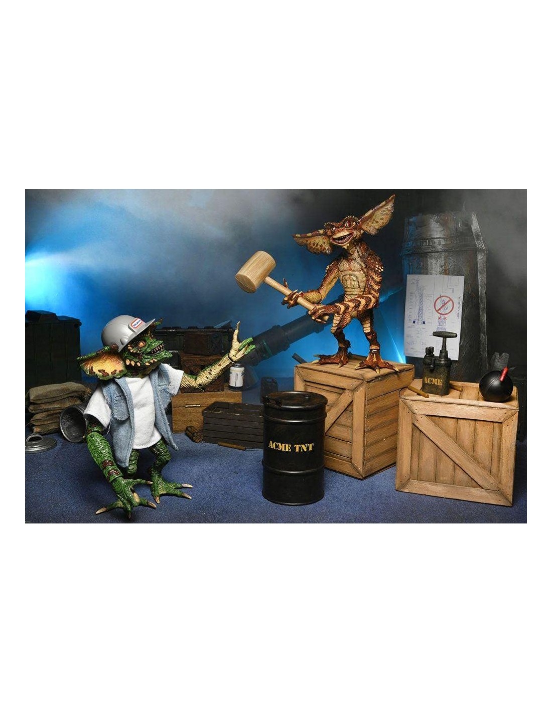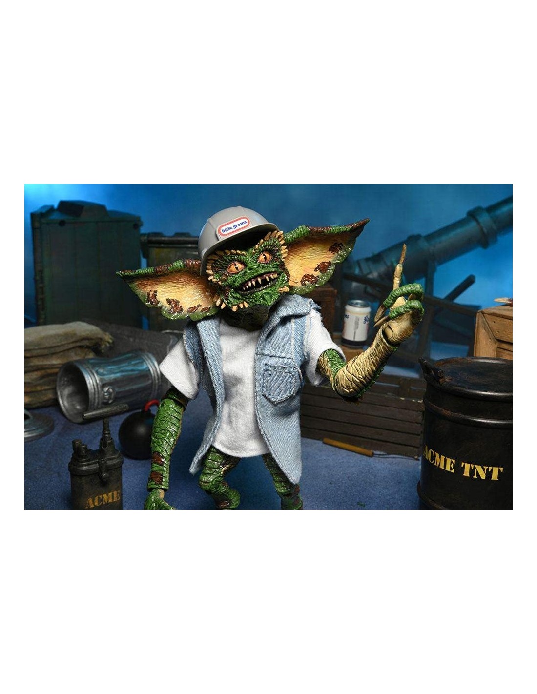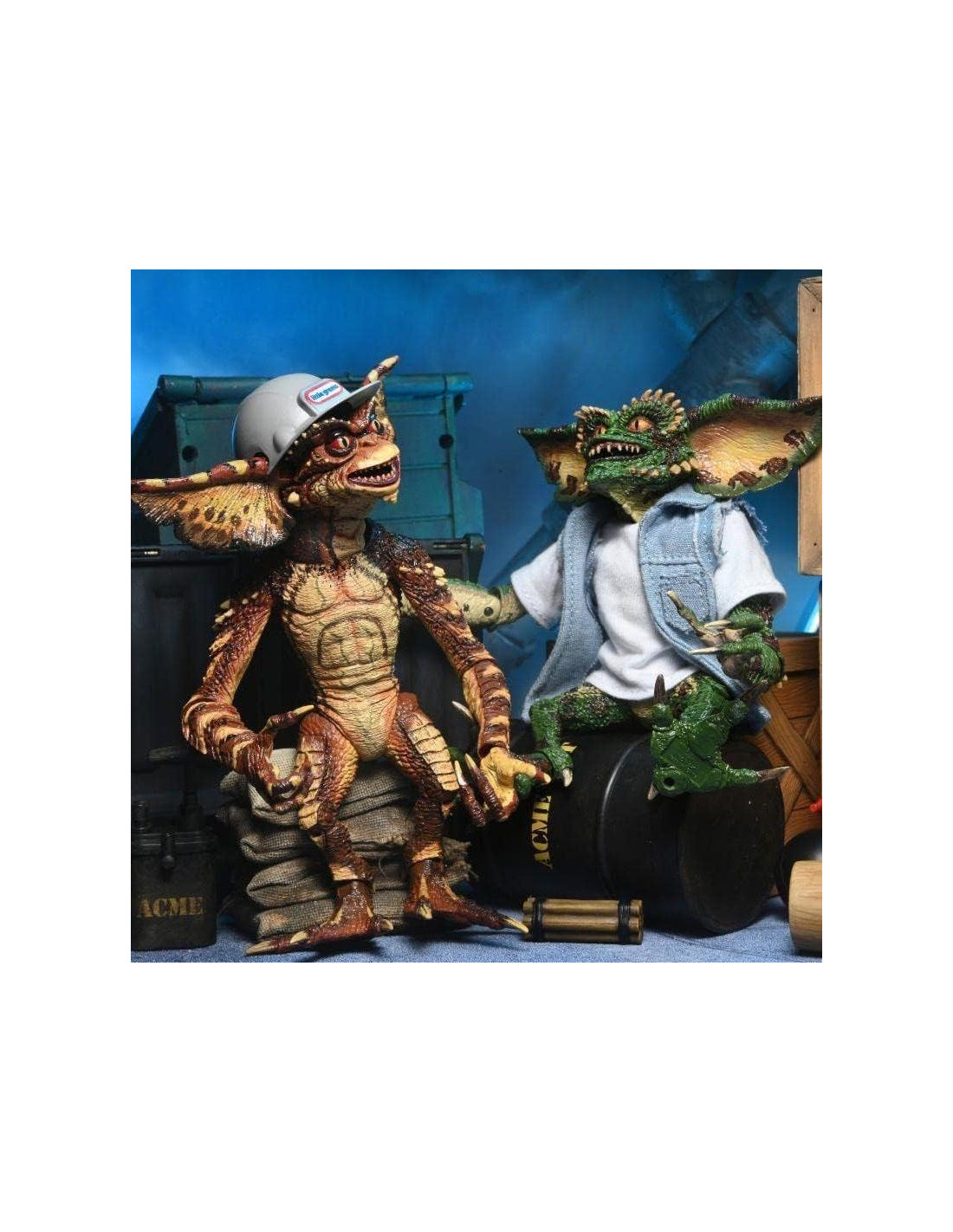 NECA presenta esta set de 2 figuras Ultimate Demolition Gremlin, dentro de su linea Ultimate, basadas en los personajes de Gremlins 2. las figuras del set miden unos 18 cm y se incluye barril, mazo, bomba, lata, dinamita, émbolo de dinamita, manos intercambiables, casco, camiseta de tela y chaleco vaquero. y 1x chaleco vaquero."