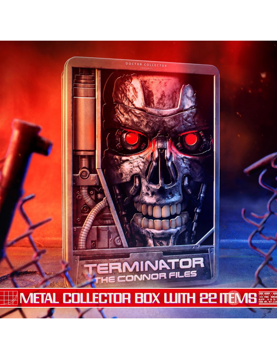 Doctor Collector presenta el Kit exclusivo Collector's Box Terminator - The Connor Files. Inspirado en las películas "Terminator" y "Terminator 2: Judgment Day", contiene: 1x guía de la resistencia Tech-Com, 1x unidad de Procesamiento Neural del T-800, 1x tarjeta de acceso remoto, 1x sobre de LAPD, 1x identificación del Dr. Peter Silberman, 1x foto de Sarah Connor, 1x hoja del listín telefónico, 1x plano del laboratorio de Cyberdyne Systems, 1x evaluación psiquiátrica de Sarah Connor, 1x plano del T-800, 1x informe de arresto de Kyle Reese, 1x Informe juvenil de John Connor, 1x identificación del Dr. Miles Dyson, 1x tarjeta del Tiki Motel, 1x identificación universitaria de Sarah Connor, 1x sobre y 1x tarjeta de seguridad de Cyberdyne Systems. UNIDADES LIMITADAS.