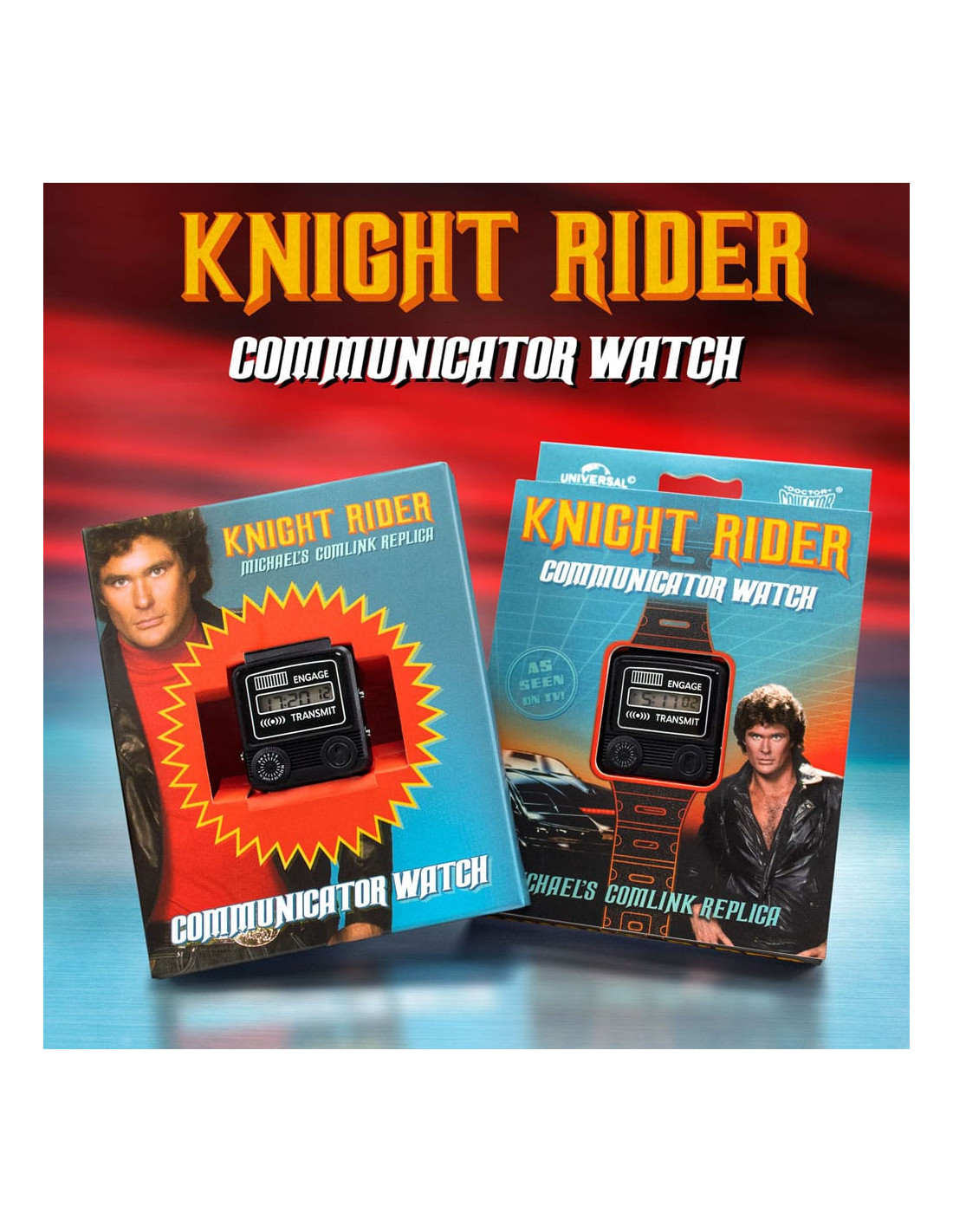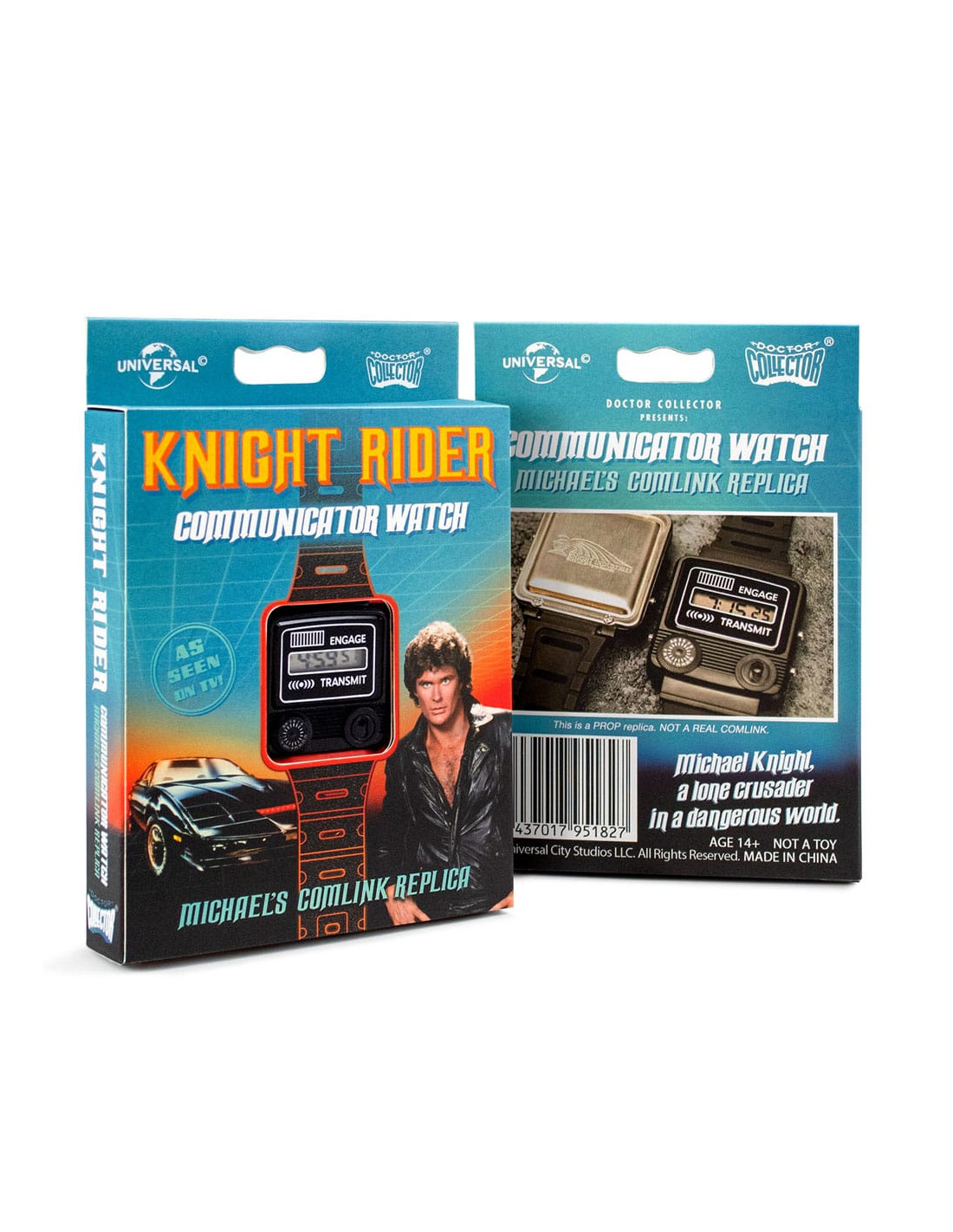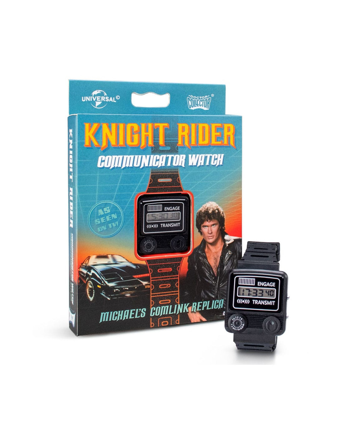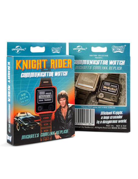Doctor Collector vuelve a presentar esta réplica del reloj comunicador de la serie Knight Rider (conocida como El coche fantástico en España ). Incluye el logotipo de Knight Industries grabado en la placa de acero inoxidable trasera. *Se trata de una réplica con funciones básicas de reloj, no es un enlace de comunicaciones real. UNIDADES LIMITADAS.