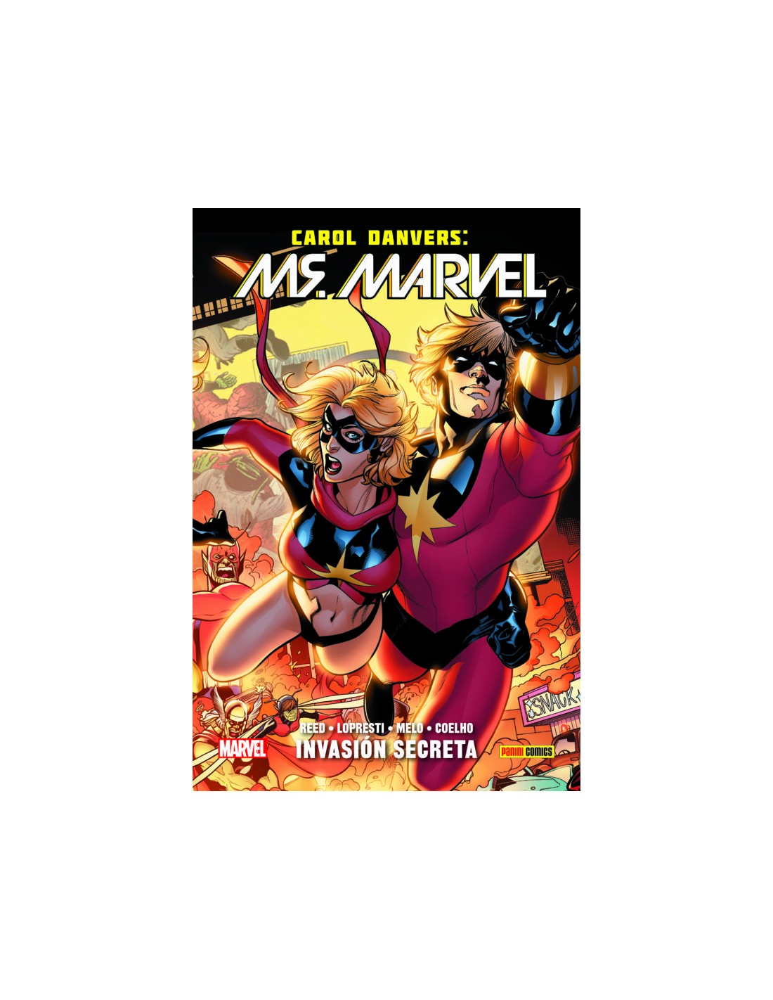 La participación de Carol Danvers en los sucesos de Invasión Secreta. En SHIELD han señalado a Ms. Marvel como una skrull. ¿Podrá ella defenderse de sus propios compañeros? ¿Y si éstos tienen razón y los invasores alienígenas han conseguido suplantar a Carol Danvers? áNada volverá a ser lo mismo para la más importante heroína Marvel!