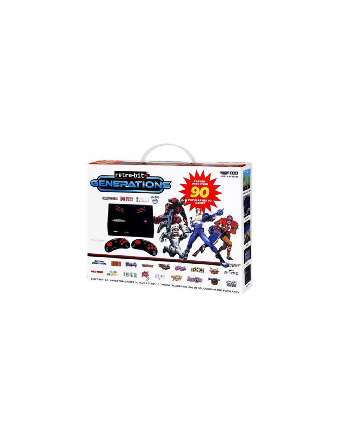Incluye juegos de los desarrolladores más prestigiosos - Incluye 2 mandos retro USB de 6 botones - Salida HDMI y AV - Ranura para tarjetas SD para guardar y trasferir el progreso en los juegos. - Diseño elegante y compacto - Interfaz de usuario intuitiva - Función de guardar partida interna, guarda tu progreso donde y cuando sea. Lista de juegos: - 1942 - 1943 - 2048 - 10-Yard Fight - Aguna - Apocalypse II - Argus - Astrohawk - Astyanax - Avenging Spirit - Banishing Racer - Bases Loaded - Bashi Bazook: Morphoid Masher - Battle Squadron - Battle Unit Zeoth - Big Run - Bionic Commando - The Black Bass - The Blue Marlin - Brawl Brothers - Broken Circle - Captain Commando - City Connection - Commando - Corn Buster - Creepy Bird - Escape from Atlantis - Exed Exes - Exerion - Field Combat - Forgotten Worlds - Formation Z - Fortified Zone - Free Fall - Ghosts ’N Goblins - Gun.Smoke - Hammerin' Harry - Hero Pinball Party - Higemaru - Holy Diver - Hoops - The Ignition Factor - Ikari no Yousai 2 (Fortified Zone 2) - Image Fight - JaJaMaru no Daibouken - Jim Power - Kaitetsu Yanchamaru 3 (Kid Niki 3) - Kickle Cubicle - Kid Niki: Radical Ninja - Knights of the Round - Kung-Fu - Kung-Fu Master - Lan Master - Lawn Mower - Legend E - Major Title Golf - Maru's Mission - Mazezam - Mercs - Mr. Bloopy - Night Defender 2 - Ninja JaJaMaru-Kun - Onslaught - Operation Logic Bomb - The Peace Keepers - Pinball Quest - Questforge - R-Type 3 - Ring King - Rival Turf - Rockfall - Rocky Rodent - Rod Land (Game Boy) - Rod Land (NES) - Skip and Friends - Smart Mouse - Soldam - SonSon - Sumo Slam - Super Bases Loaded - Super Bases Loaded 3 - Super Earth Defense Force - Super Ghouls ’N Ghosts - Super Noah's Ark - Super Professional Baseball 2 - Super R-Type - Sword of Sodan - Thor's Quest - Totally Rad - Tuff E Nuff - Varth: Operation Thunderstorm - Water Margin - Yang Warrior Family - Youkai Club - Zippy Race - Zooming Secretaries