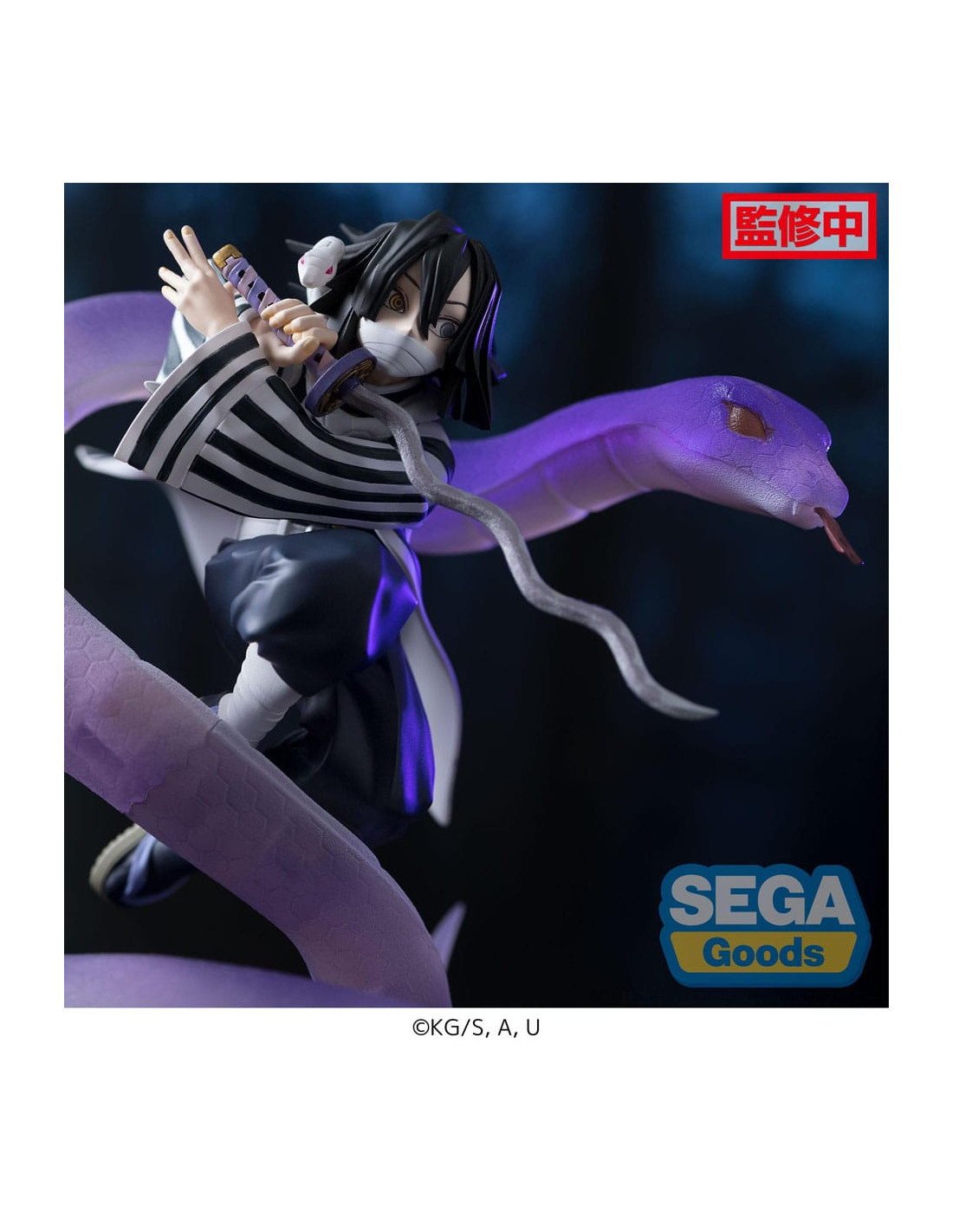 Sega presenta la figura de Obanai Iguro Hashira Training Arc Version. Mide 14 cm y está basada en su apariencia en el anime "Demon Slayer: Kimetsu No Yaiba". Puedes exponerla junto a las figuras de Sanemi Shinazugawa y Obanai Iguro Hashira Training Arc Version (se venden por separado).
