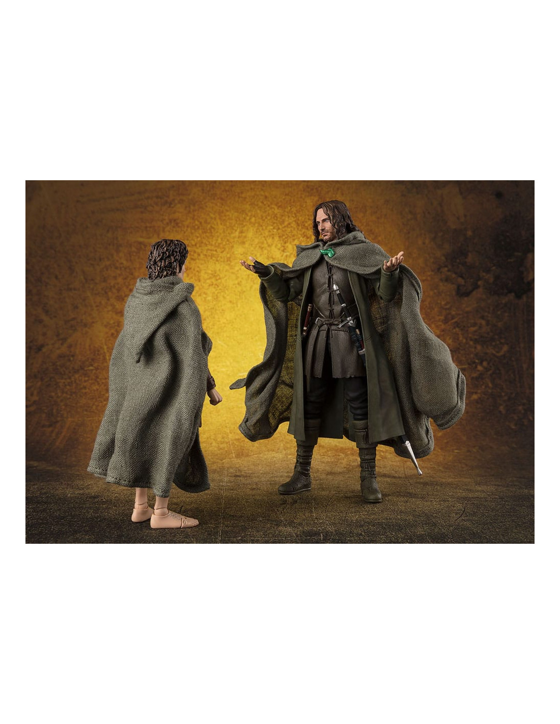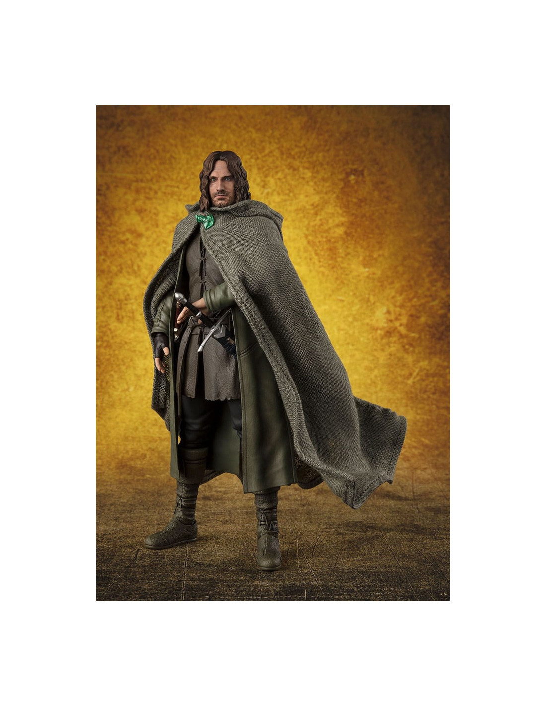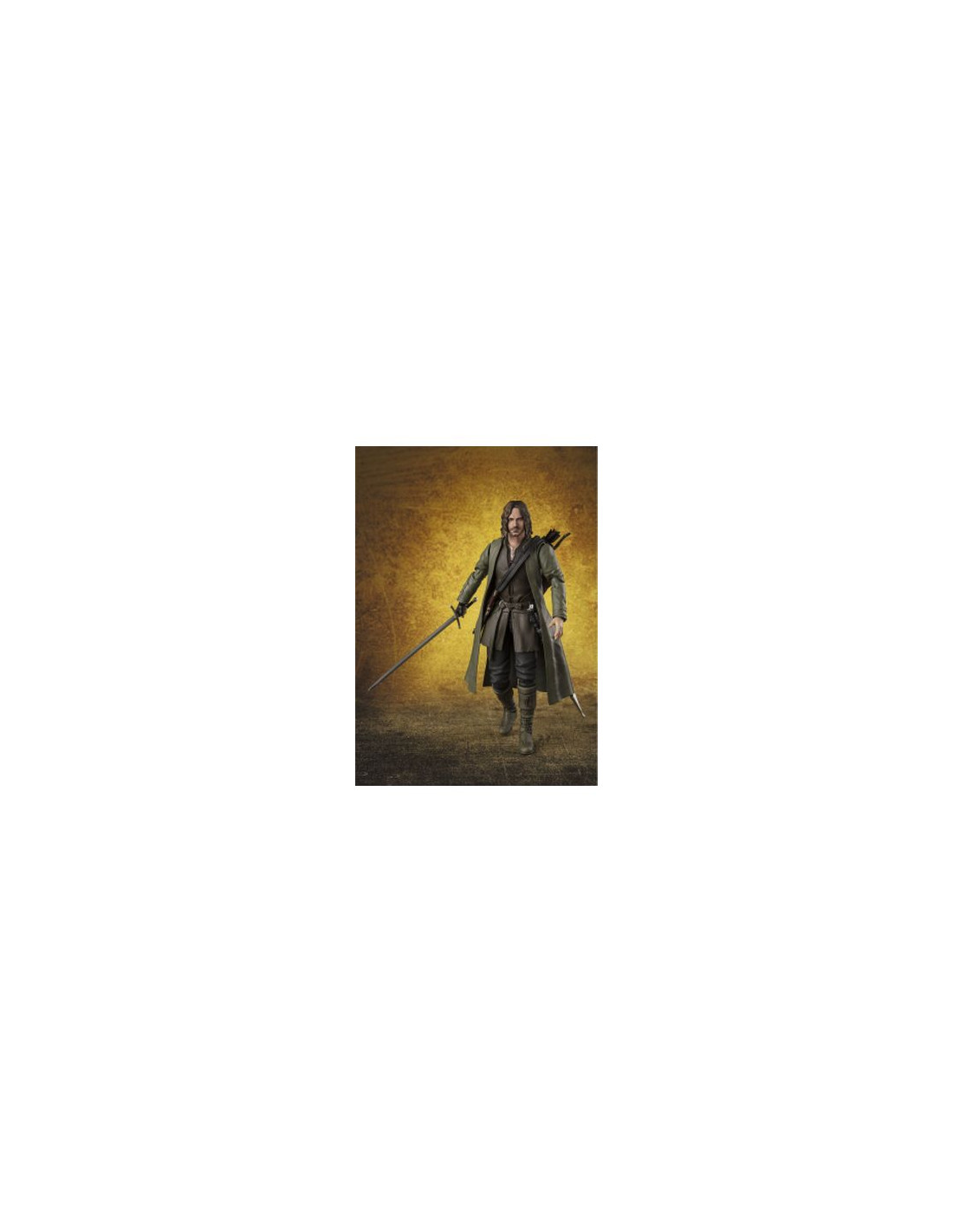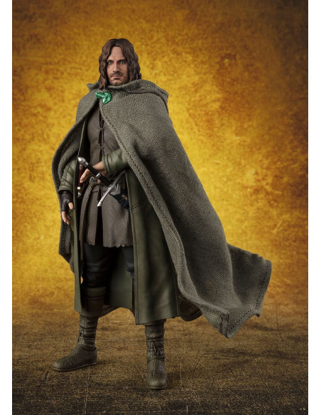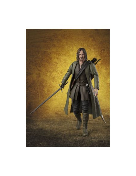 Tamashii Nations presenta, dentro de la colección S.H. Figuarts, la figura de Aragorn. Mide 15,5 cm y está basada en el personaje de la película de "The Lord of the Rings: The Fellowship of Ring" ("El Señor de los Anillos: La Comunidad del Anillo" en España). Contiene 3x pares de manos intercambiables, 1x espada, 1x daga, 1x carcaj y 1x capa. Puedes exponerla junto a la figuras de Frodo Baggins y Gollum (se venden por separado). UNIDADES LIMITADAS