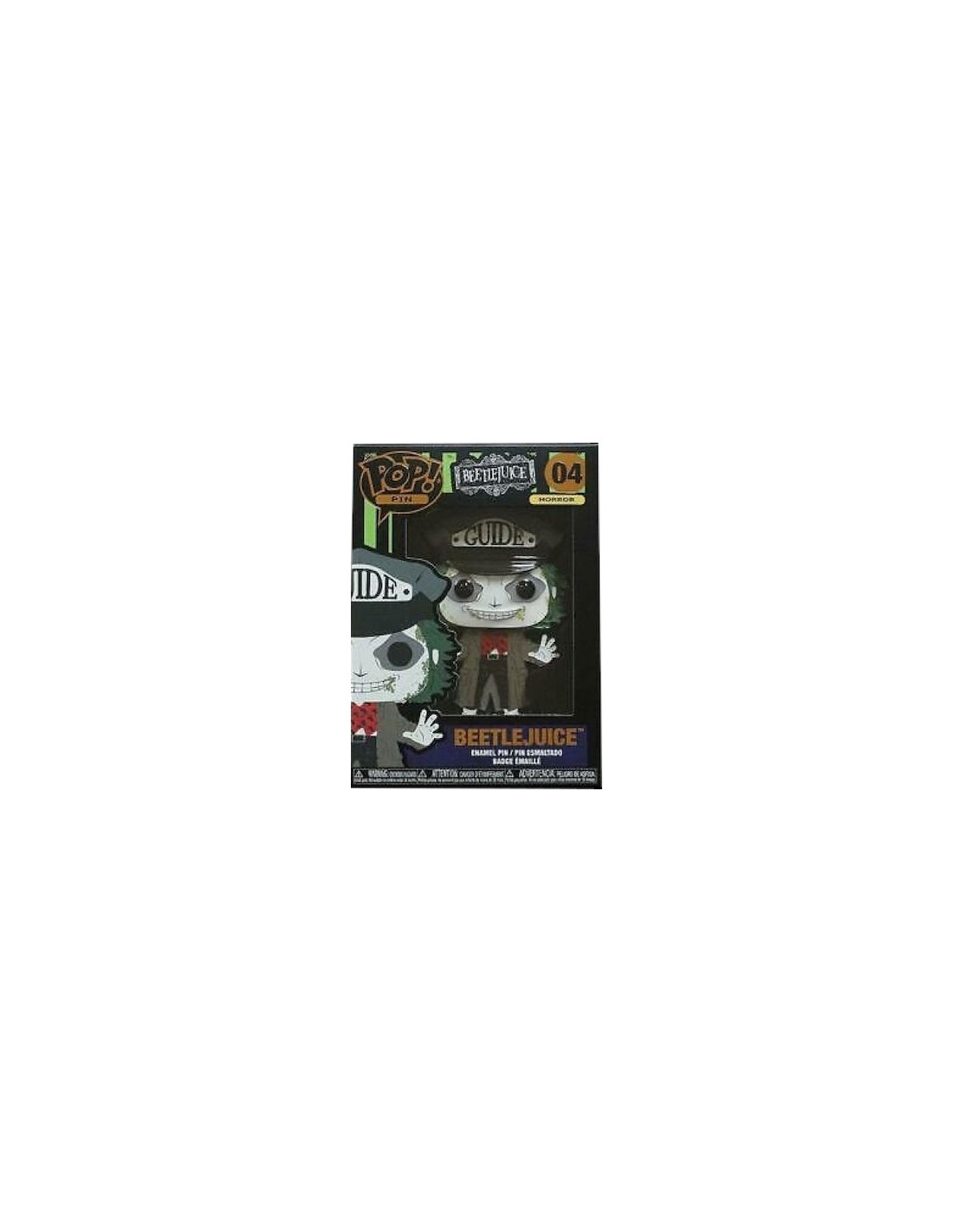 Funko presenta su nueva colección Pin Beetlejuice (04) fabricado en metal y lacado de alta calidad, de aproximadamente 10 cm de altura. Consta de 3 puntos de sujeción y base para su exposición. Presentado en caja con ventana.