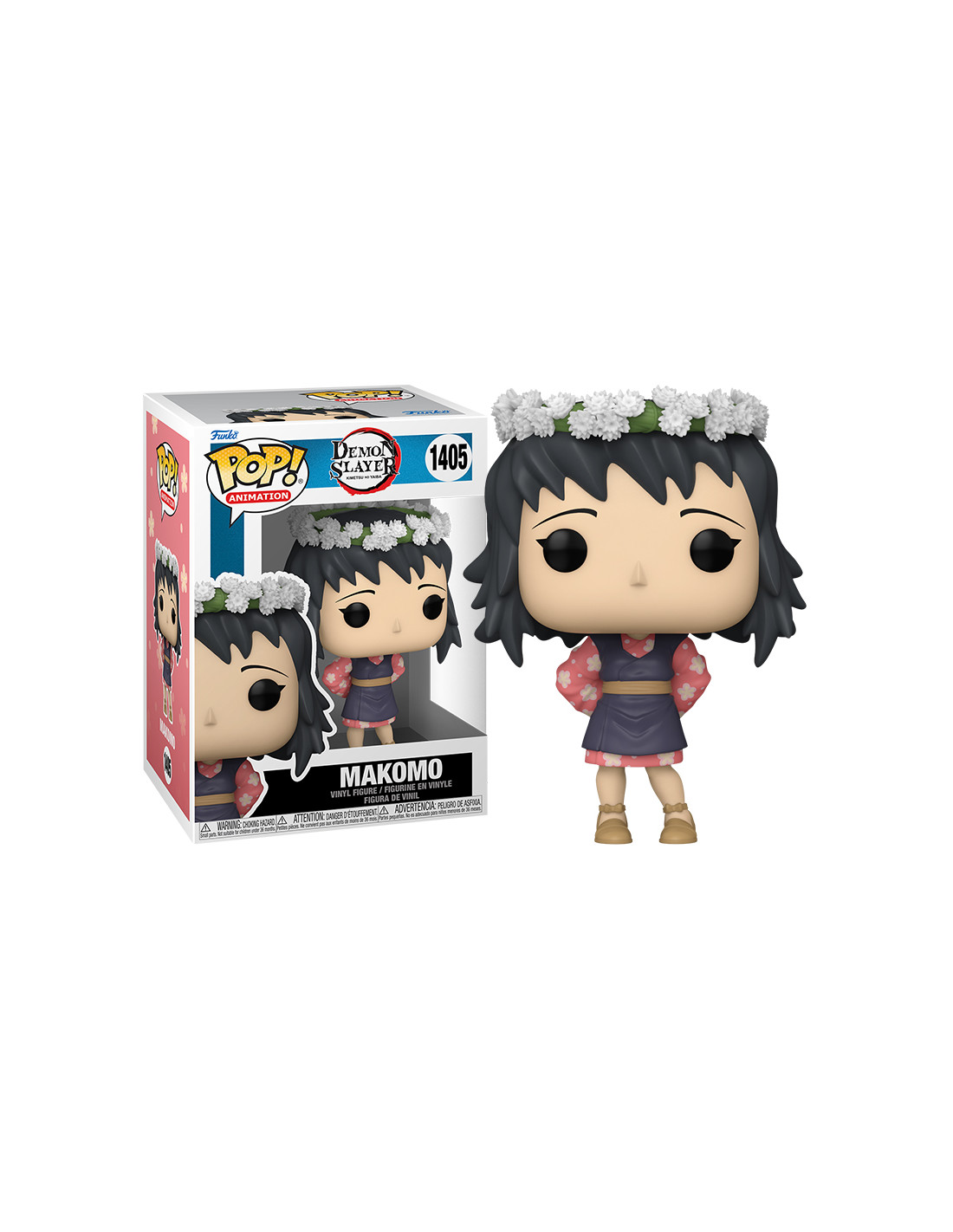 Demon Slayer Makomo Flower Headdress (1405). Figura de colección de la marca Funko Pop! · Fabricada en vinilo y con una cabeza de tamaño desproporcionado como principal rasgo distintivo. · Mide unos 9 cm. de altura aproximada. · Se entrega en una caja de cartón y plástico rígido transparente. · Con licencia oficial de DEMON SLAYER.
