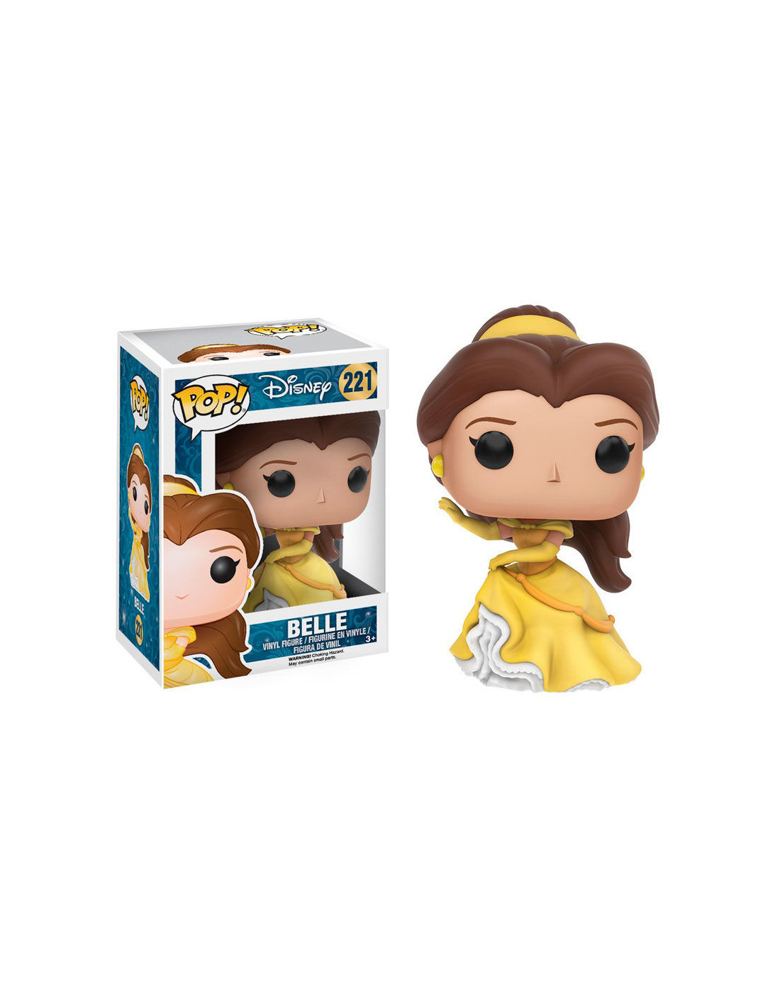 Disney La Bella y la Bestia Bella (221). Figura de colección de la marca Funko Pop! · Fabricada en vinilo y con una cabeza de tamaño desproporcionado como principal rasgo distintivo. · Mide unos 9 cm. de altura aproximada. · Se entrega en una caja de cartón y plástico rígido transparente. · Con licencia oficial de DISNEY.