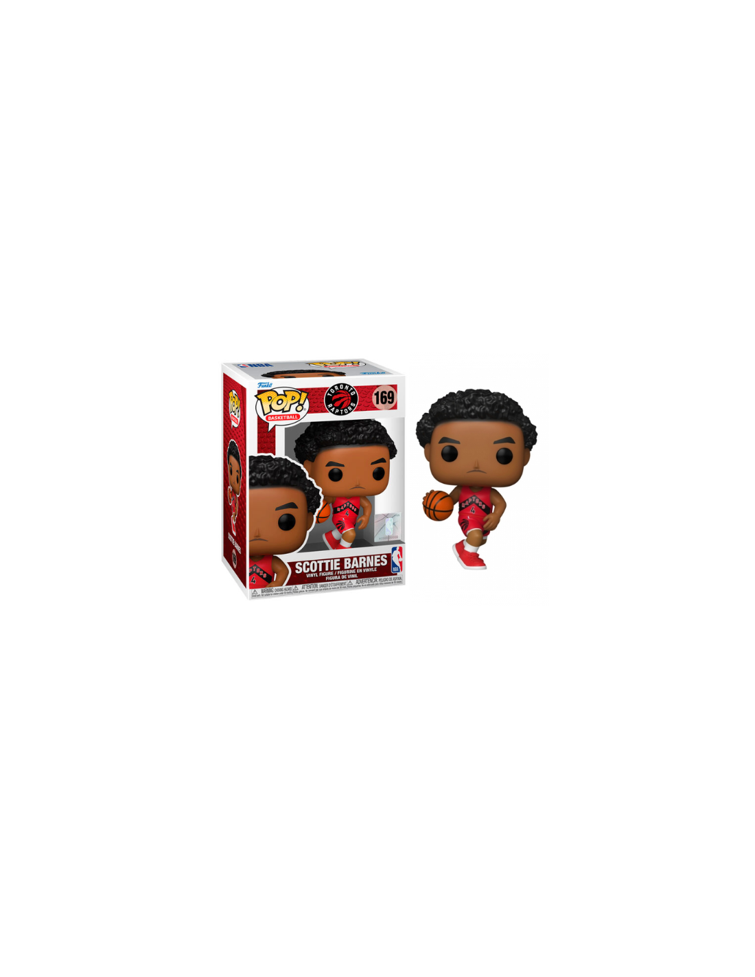Toronto Raptors Scottie Barnes (169). Figura de colección de la marca Funko Pop! · Fabricada en vinilo y con una cabeza de tamaño desproporcionado como principal rasgo distintivo. · Mide unos 9cm. de altura aproximada. · Se entrega en una caja de cartón y plástico rígido transparente. · Con licencia oficial de NBA.