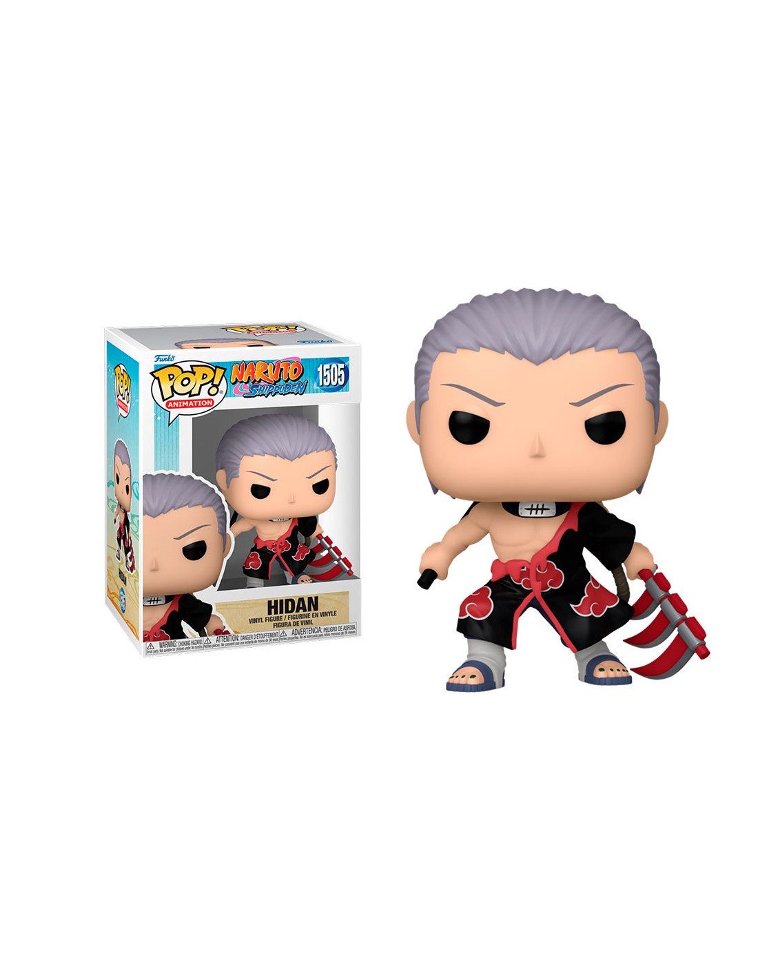 Naruto Shippuden Hidan (1505). Figura de colección de la marca Funko Pop! · Fabricada en vinilo y con una cabeza de tamaño desproporcionado como principal rasgo distintivo. · Mide unos 9cm. de altura aproximada. · Se entrega en una caja de cartón y plástico rígido transparente. · Con licencia oficial de NARUTO.