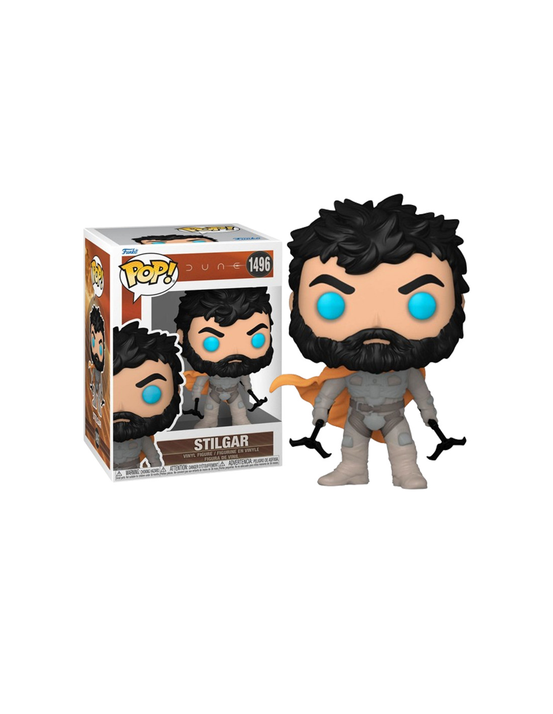 Dune II Stilgar (1496). Figura de colección de la marca Funko Pop! · Fabricada en vinilo y con una cabeza de tamaño desproporcionado como principal rasgo distintivo. · Mide unos 9cm. de altura aproximada. · Se entrega en una caja de cartón y plástico rígido transparente. · Con licencia oficial de DUNE.