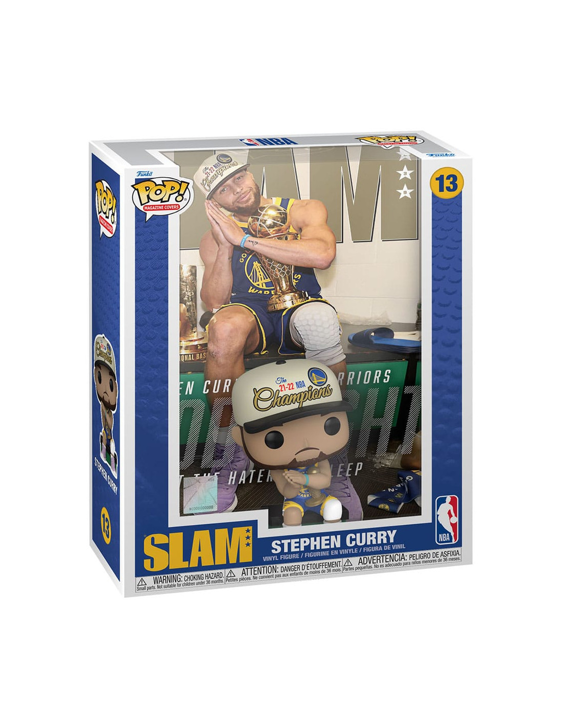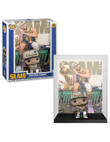 NBA Slam Stephen Curry (13). Figura de colección de la marca Funko Pop! · Fabricada en vinilo y con una cabeza de tamaño desproporcionado como principal rasgo distintivo. · Mide unos 9cm. de altura aproximada. · Se entrega en una caja de cartón y plástico rígido transparente. · Con licencia oficial de NBA.