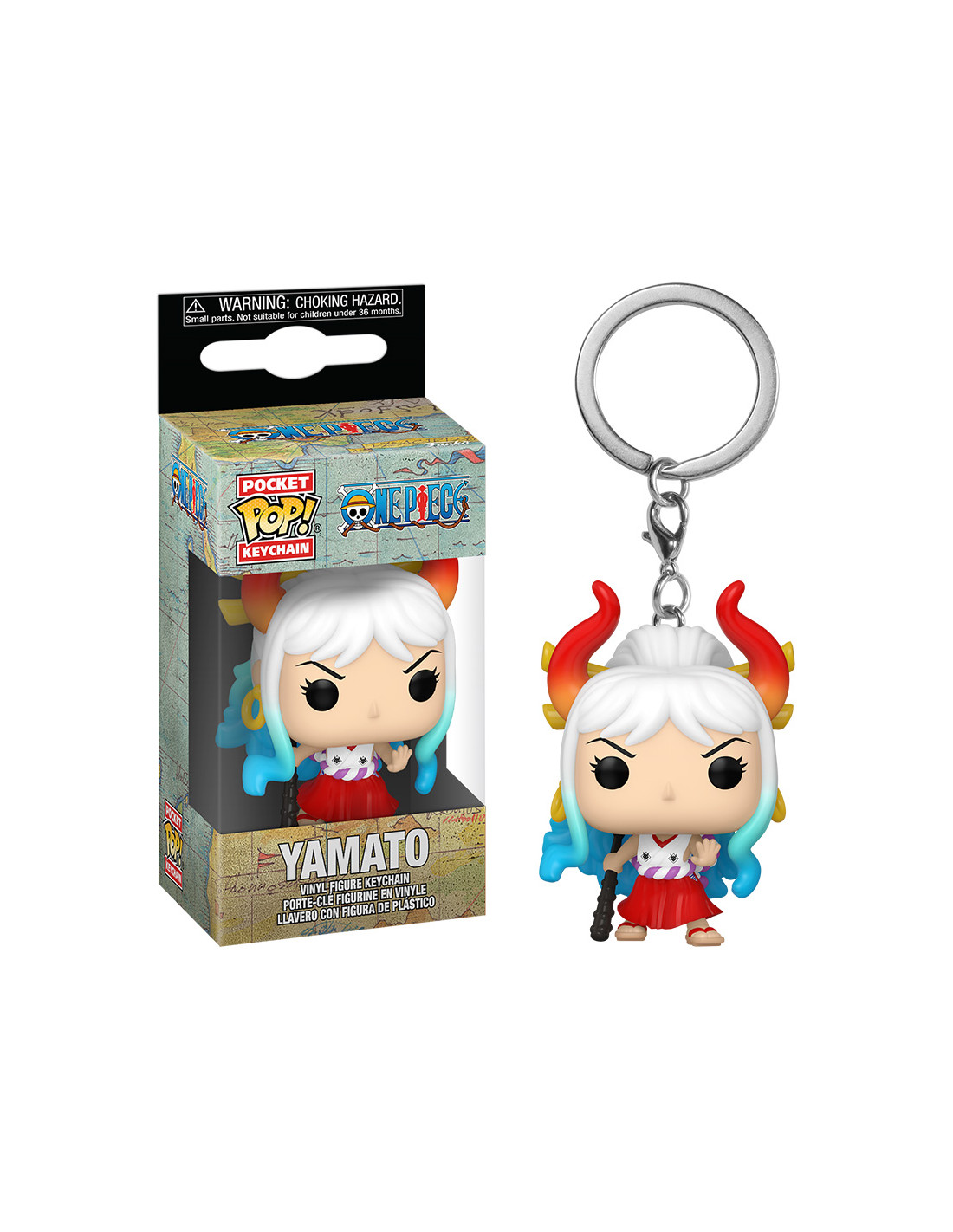 Llavero POCKET POP! One Piece Yamato. Figura de colección de la marca Funko Pop! · Fabricada en vinilo y con una cabeza de tamaño desproporcionado como principal rasgo distintivo. · Mide unos 4cm. de altura aproximada. · Se entrega en una caja de cartón y plástico rígido transparente. · Con licencia oficial de ONE PIECE.