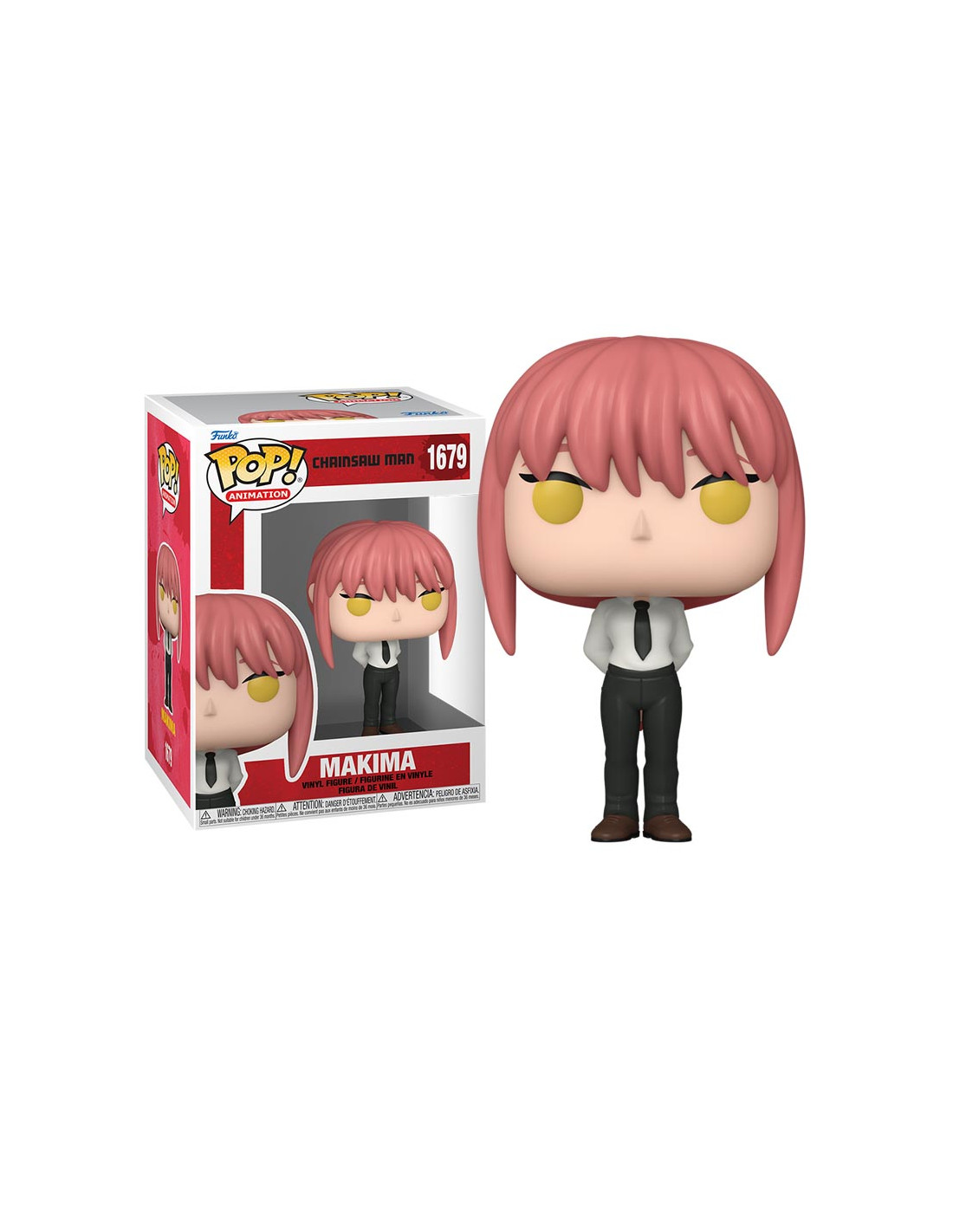 Chainsaw Man Makima (1679). Figura de colección de la marca Funko Pop! · Fabricada en vinilo y con una cabeza de tamaño desproporcionado como principal rasgo distintivo. · Mide unos 9cm. de altura aproximada. · Se entrega en una caja de cartón y plástico rígido transparente. · Con licencia oficial de CHAINSAW MAN.
