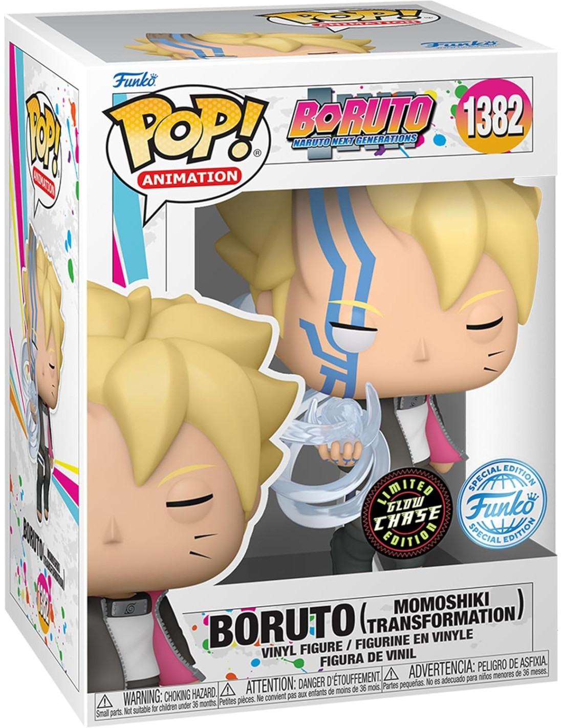 Boruto Naruto Next Generations Boruto (Momoshiki Transformation) Special Edition CHASE (1382). Figura de colección de la marca Funko Pop! · Fabricada en vinilo y con una cabeza de tamaño desproporcionado como principal rasgo distintivo. · Mide unos 9cm. de altura aproximada. · Se entrega en una caja de cartón y plástico rígido transparente. · Con licencia oficial de NARUTO.