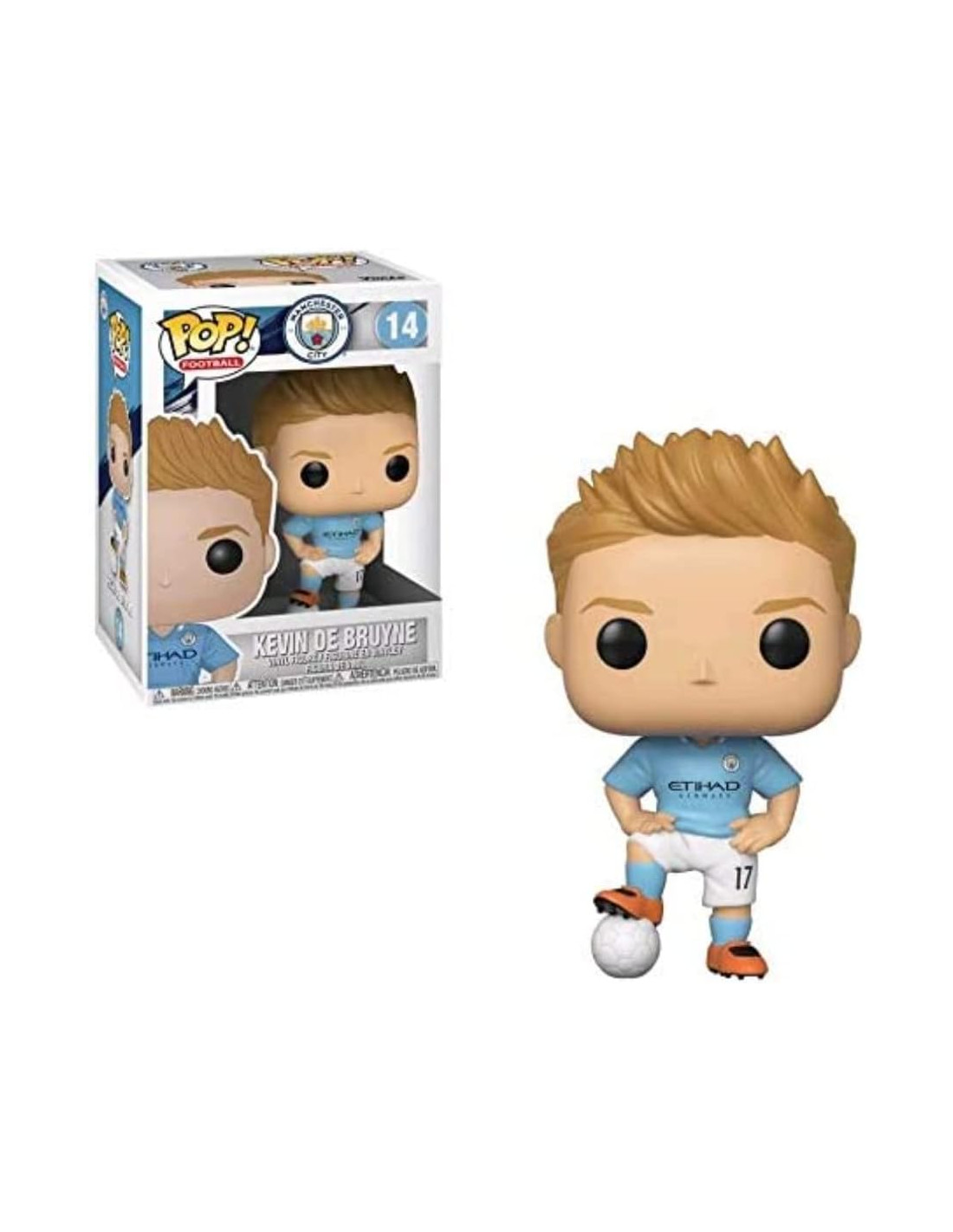 Manchester City Kevin de Bruyne 14). Figura de colección de la marca Funko Pop! · Fabricada en vinilo y con una cabeza de tamaño desproporcionado como principal rasgo distintivo. · Mide unos 9cm. de altura aproximada. · Se entrega en una caja de cartón y plástico rígido transparente. · Con licencia oficial de MANCHESTER CITY.