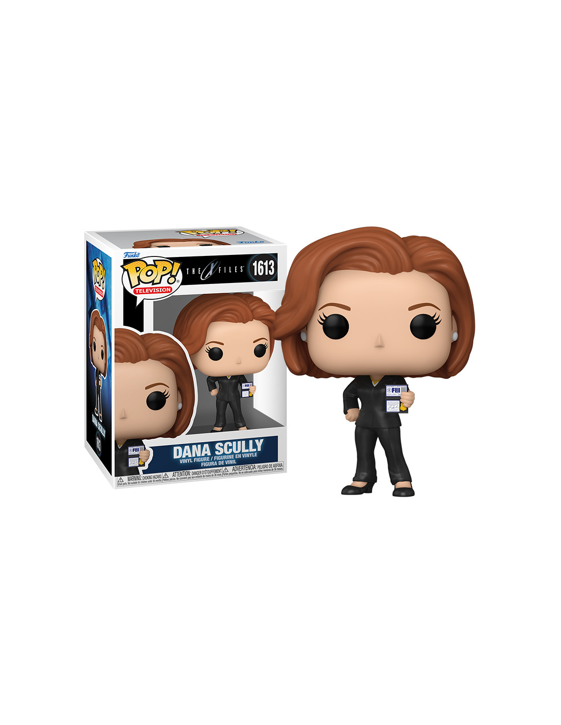 The X-Files (Expediente X) Dana Scully (1613). Figura de colección de la marca Funko Pop! · Fabricada en vinilo y con una cabeza de tamaño desproporcionado como principal rasgo distintivo. · Mide unos 9cm. de altura aproximada. · Se entrega en una caja de cartón y plástico rígido transparente. · Con licencia oficial de THE X-FILES (EXPEDIENTE X).
