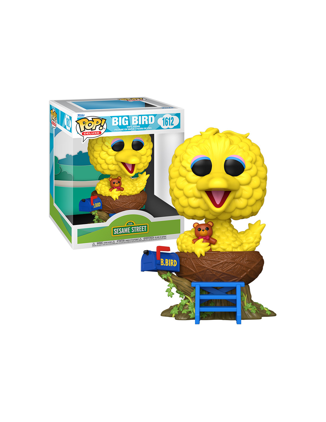 Barrio Sesamo Big Bird Deluxe (1612). Figura de colección de la marca Funko Pop! · Fabricada en vinilo y con una cabeza de tamaño desproporcionado como principal rasgo distintivo. · Mide unos 9cm. de altura aproximada. · Se entrega en una caja de cartón y plástico rígido transparente. · Con licencia oficial de BARRIO SESAMO.