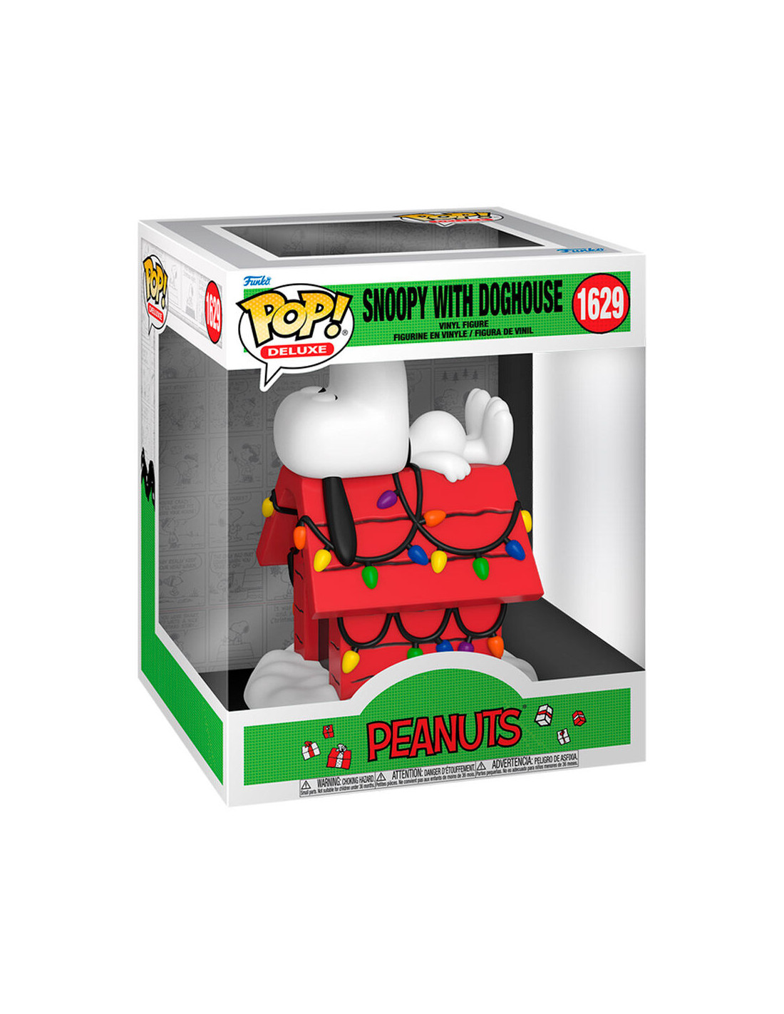 Snoopy (Peanuts) Deluxe Snoopy with Doghouse (1629). Figura de colección de la marca Funko Pop! · Fabricada en vinilo y con una cabeza de tamaño desproporcionado como principal rasgo distintivo. · Mide unos 15cm. de altura aproximada. · Se entrega en una caja de cartón y plástico rígido transparente. · Con licencia oficial de SNOOPY.