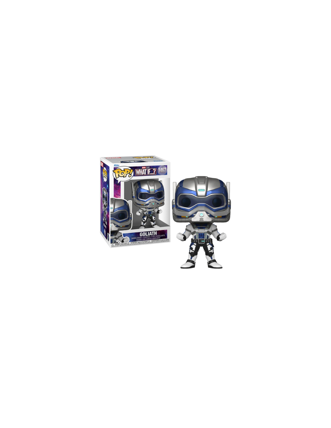 Marvel Studios What if...? Goliath (1467). Figura de colección de la marca Funko Pop! · Fabricada en vinilo y con una cabeza de tamaño desproporcionado como principal rasgo distintivo. · Mide unos 9cm. de altura aproximada. · Se entrega en una caja de cartón y plástico rígido transparente. · Con licencia oficial de MARVEL