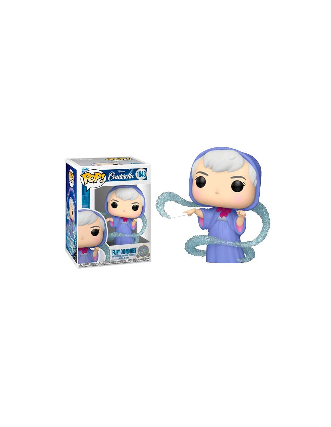 Disney Cenicienta Fairy Godmother (Hada Madrina) (1543). Figura de colección de la marca Funko Pop! · Fabricada en vinilo y con una cabeza de tamaño desproporcionado como principal rasgo distintivo. · Mide unos 9 cm. de altura aproximada. · Se entrega en una caja de cartón y plástico rígido transparente. · Con licencia oficial de DISNEY CENICIENTA.