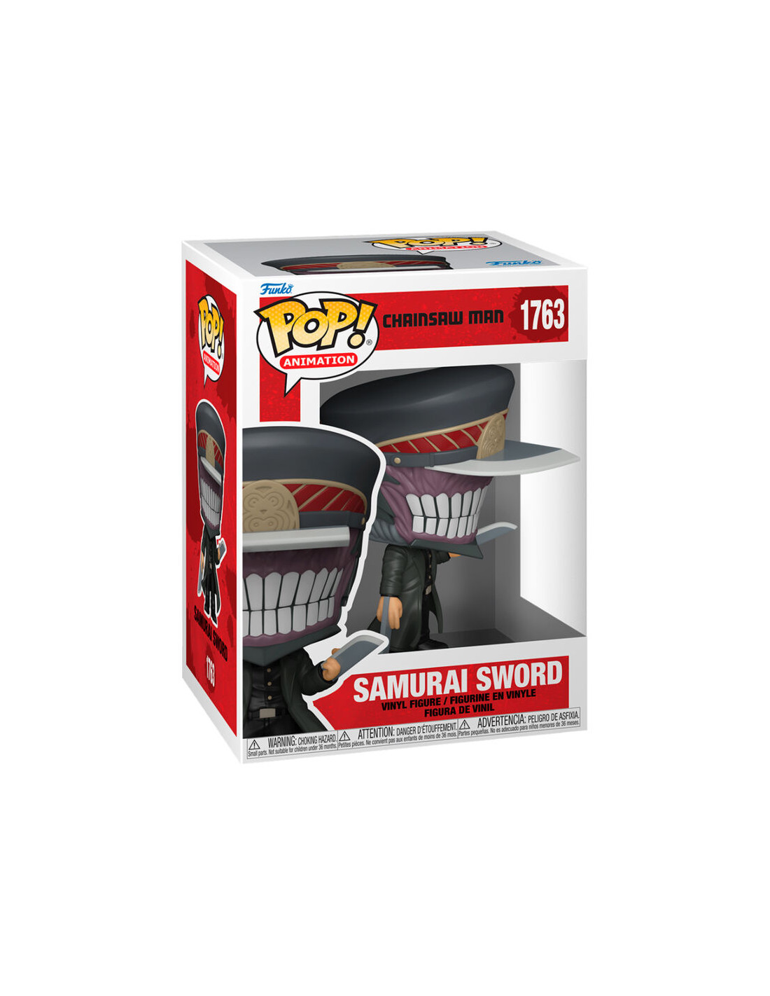 Chainsaw Man Samurai Sword (1763). Figura de colección de la marca Funko Pop! · Fabricada en vinilo y con una cabeza de tamaño desproporcionado como principal rasgo distintivo. · Mide unos 9cm. de altura aproximada. · Se entrega en una caja de cartón y plástico rígido transparente. · Con licencia oficial de CHAINSAW MAN.