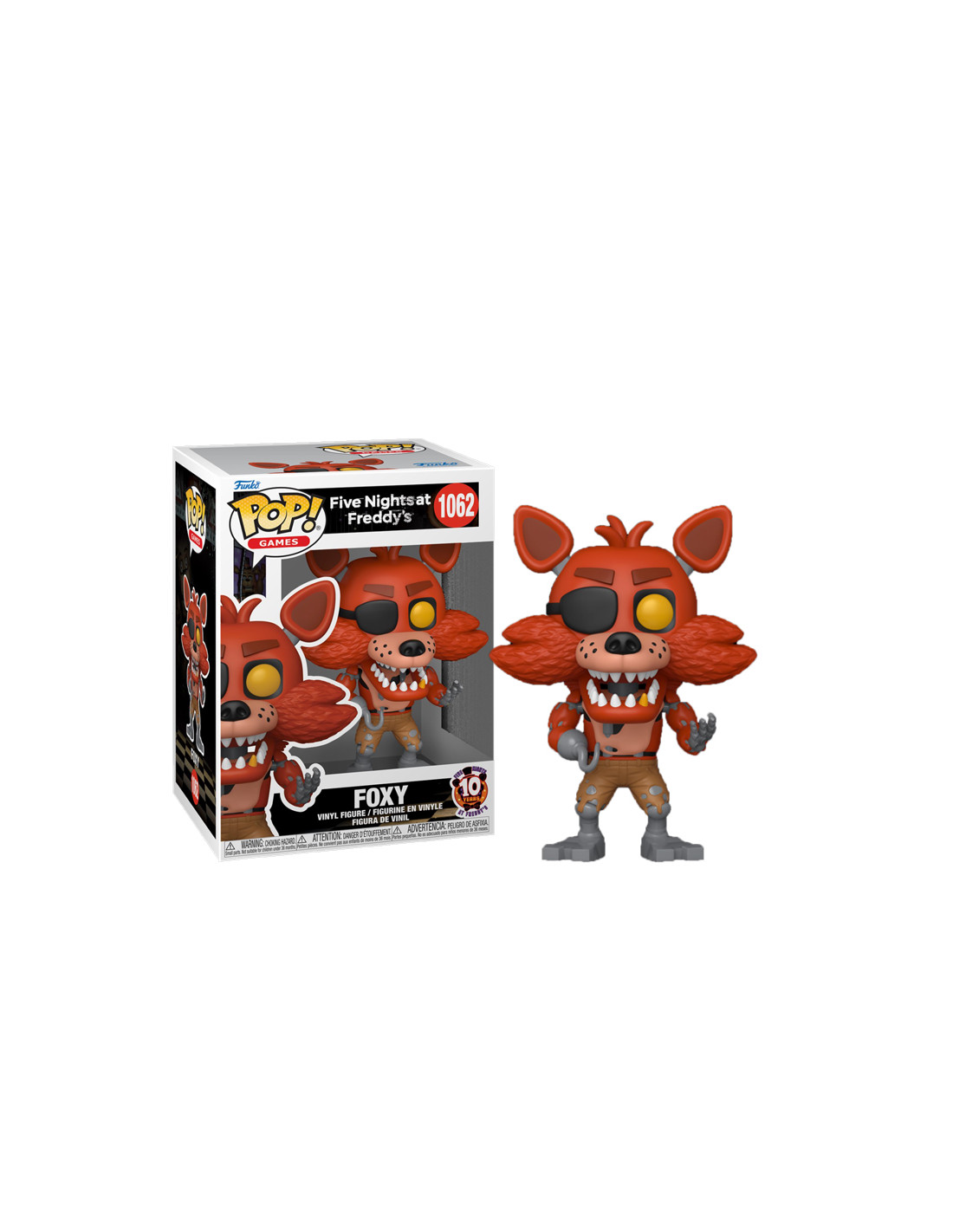 Five Nights at Freddys10 YEARS Foxy (1062). Figura de colección de la marca Funko Pop! · Fabricada en vinilo y con una cabeza de tamaño desproporcionado como principal rasgo distintivo. · Mide unos 9cm. de altura aproximada. · Se entrega en una caja de cartón y plástico rígido transparente. · Con licencia oficial de FIVE NIGHTS AT FREDDYS.