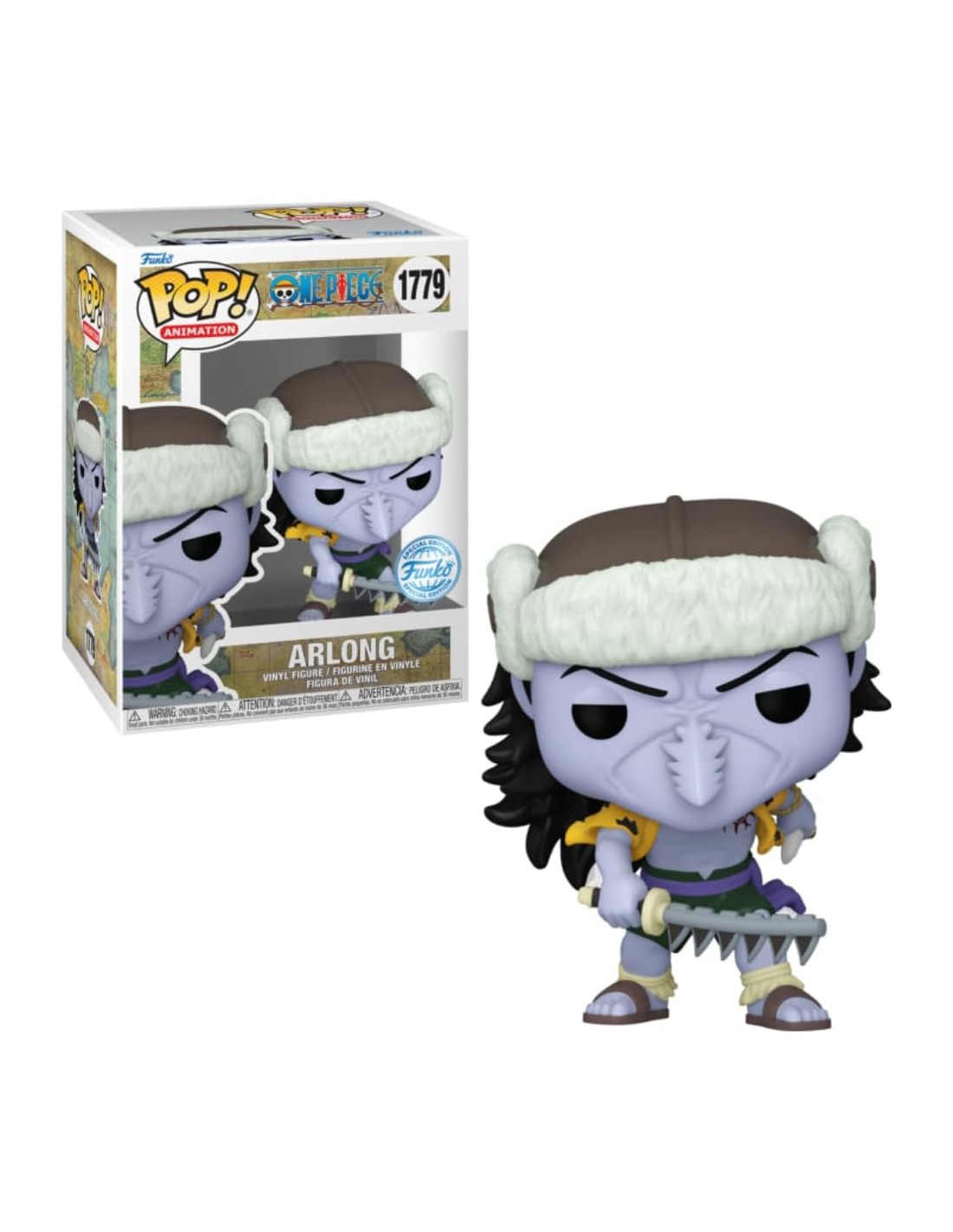 One Piece Arlong Special Edition (1779). Figura de colección de la marca Funko Pop! · Fabricada en vinilo y con una cabeza de tamaño desproporcionado como principal rasgo distintivo. · Mide unos 9cm. de altura aproximada. · Se entrega en una caja de cartón y plástico rígido transparente. · Con licencia oficial de ONE PIECE.