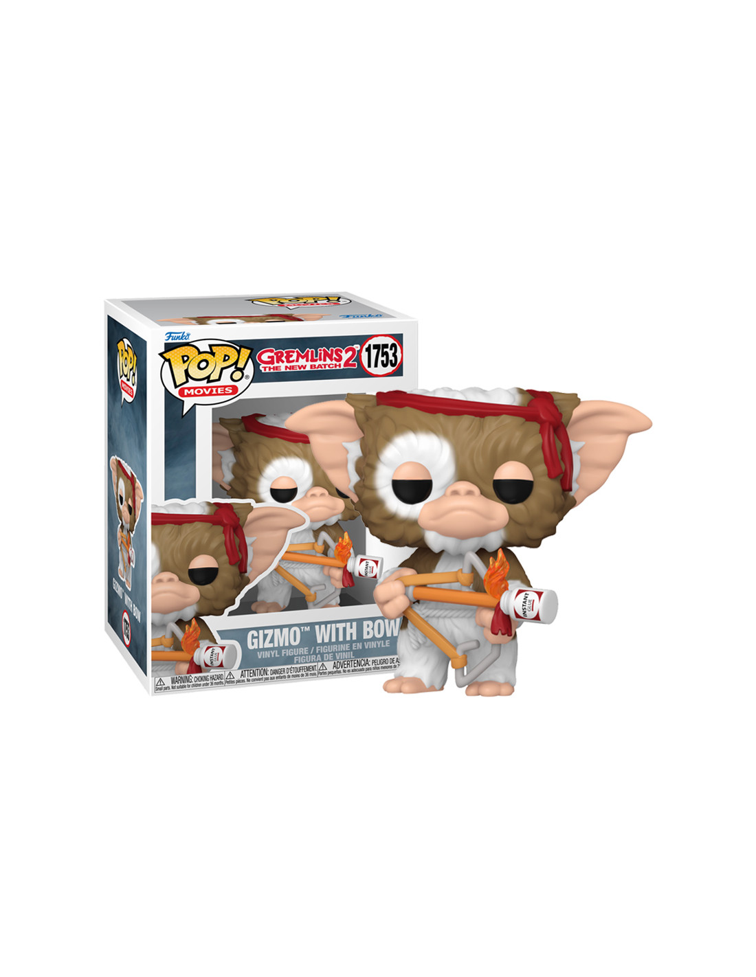 Gremlins 2 Gizmo with Bow(1753). Figura de colección de la marca Funko Pop! · Fabricada en vinilo y con una cabeza de tamaño desproporcionado como principal rasgo distintivo. · Mide unos 9cm. de altura aproximada. · Se entrega en una caja de cartón y plástico rígido transparente. · Con licencia oficial de GREMLINS.