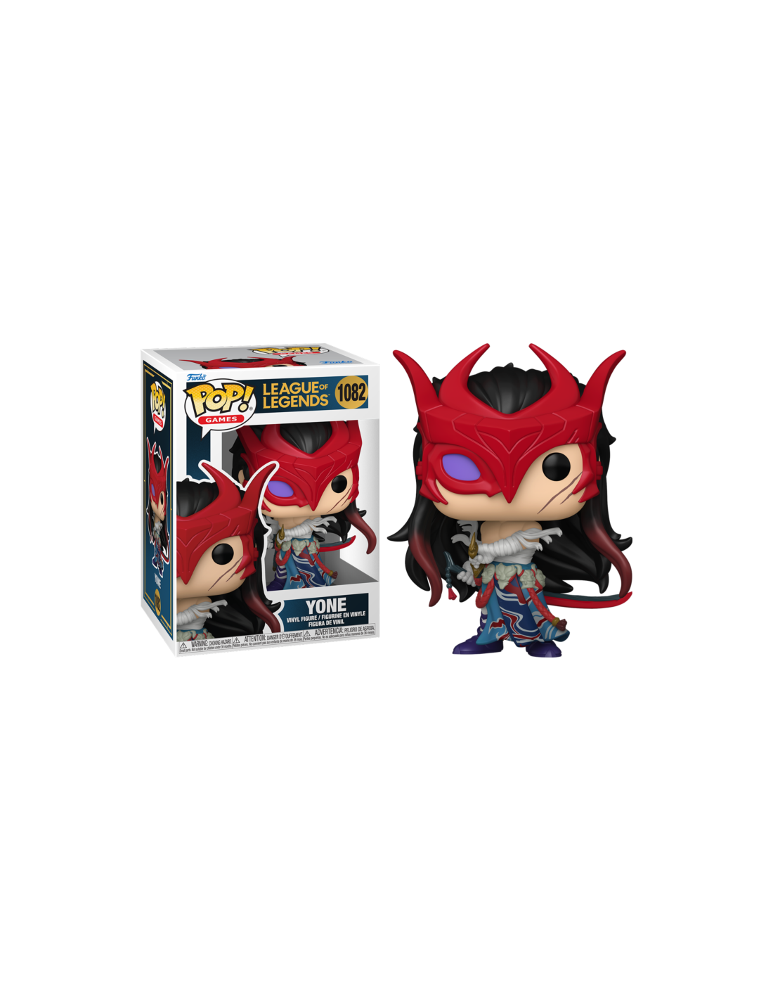 LOL League of Legends Yone (1082). Figura de colección de la marca Funko Pop! · Fabricada en vinilo y con una cabeza de tamaño desproporcionado como principal rasgo distintivo. · Mide unos 9cm. de altura aproximada. · Se entrega en una caja de cartón y plástico rígido transparente. · Con licencia oficial de LOL LEAGUE OF LEGENDS.