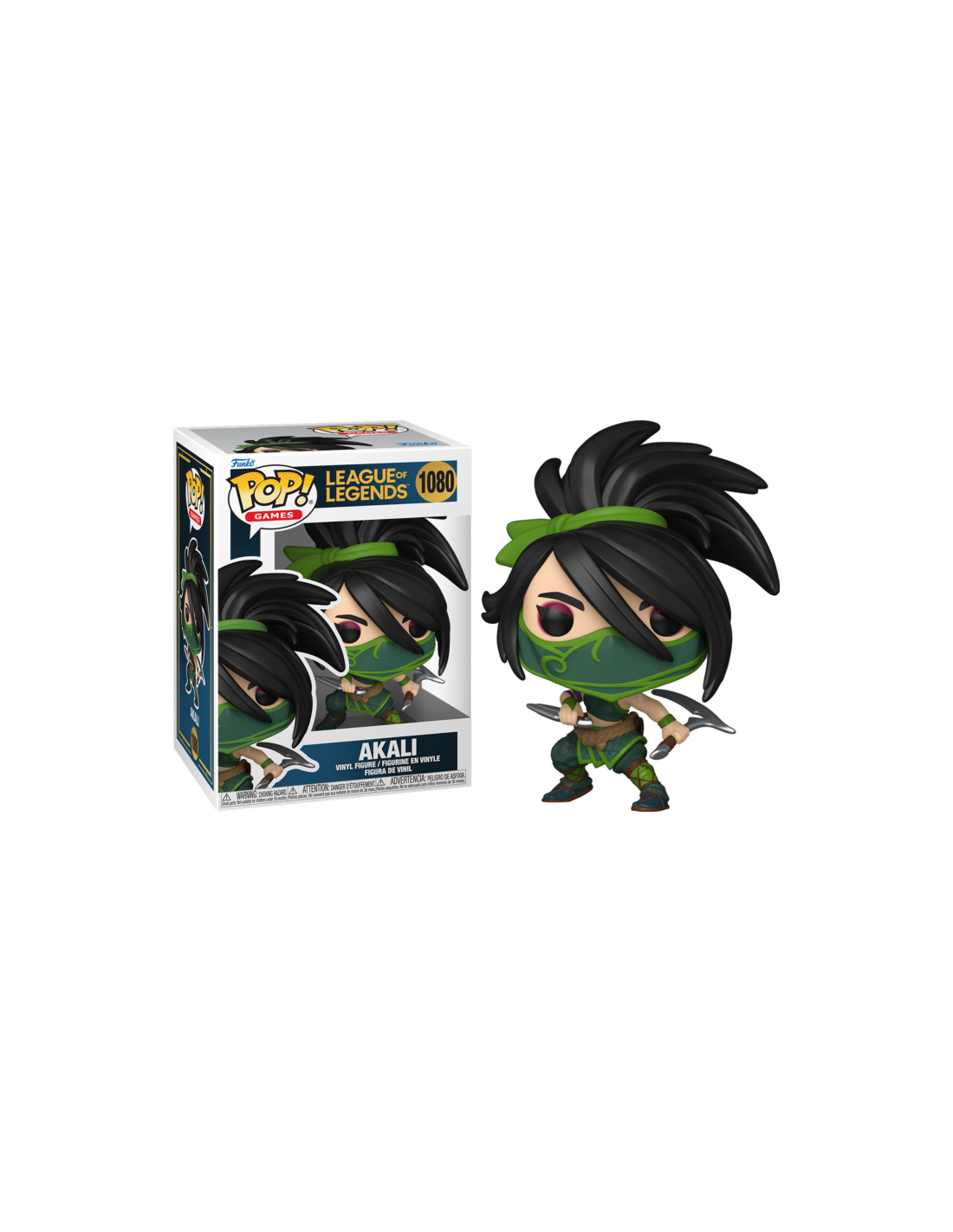 LOL League of Legends Akali (1080). Figura de colección de la marca Funko Pop! · Fabricada en vinilo y con una cabeza de tamaño desproporcionado como principal rasgo distintivo. · Mide unos 9cm. de altura aproximada. · Se entrega en una caja de cartón y plástico rígido transparente. · Con licencia oficial de LOL LEAGUE OF LEGENDS.