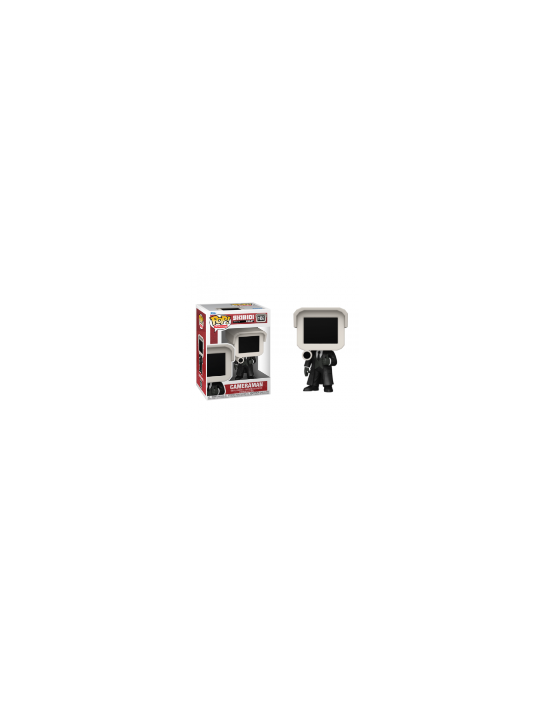 Skibidi Toilet Cameraman (1956). Figura de colección de la marca Funko Pop! · Fabricada en vinilo y con una cabeza de tamaño desproporcionado como principal rasgo distintivo. · Mide unos 9cm. de altura aproximada. · Se entrega en una caja de cartón y plástico rígido transparente. · Con licencia oficial de SKIBIDI.