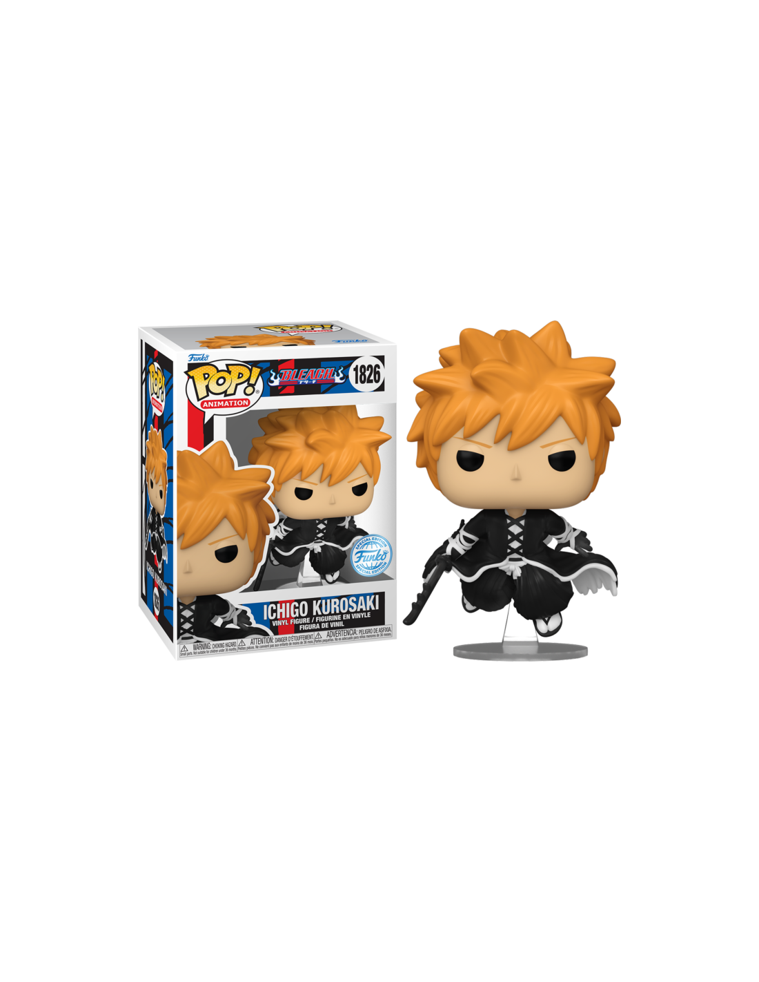 Bleach Ichigo Kurosaki Special Edition (1826). Figura de colección de la marca Funko Pop! · Fabricada en vinilo y con una cabeza de tamaño desproporcionado como principal rasgo distintivo. · Mide unos 9 cm. de altura aproximada. · Se entrega en una caja de cartón y plástico rígido transparente. · Con licencia oficial de BLEACH.