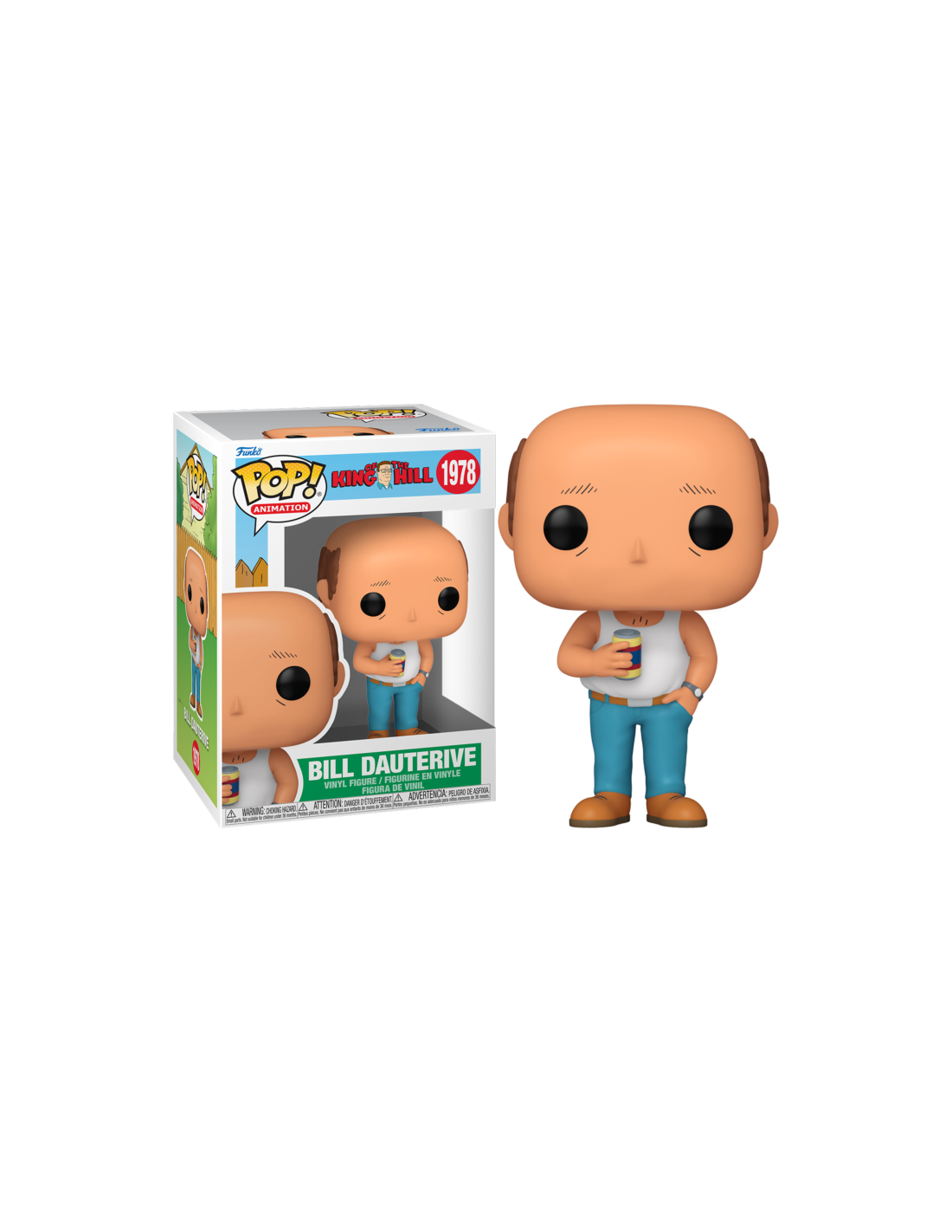 King of the Hill Bill Dauterive (1978). Figura de colección de la marca Funko Pop! · Fabricada en vinilo y con una cabeza de tamaño desproporcionado como principal rasgo distintivo. · Mide unos 9cm. de altura aproximada. · Se entrega en una caja de cartón y plástico rígido transparente. · Con licencia oficial de KING OF THE HILL.