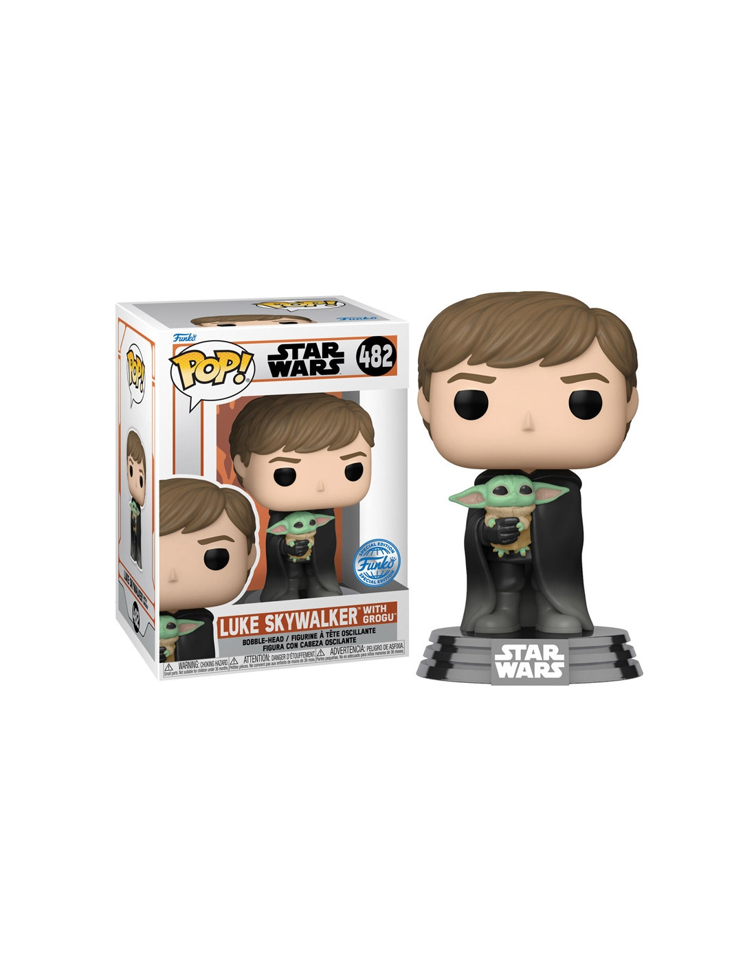 Star Wars Luke Skywalker with Grogu Special Edition (482). Figura de colección de la marca Funko Pop! · Fabricada en vinilo y con una cabeza de tamaño desproporcionado como principal rasgo distintivo. · Mide unos 15cm. de altura aproximada. · Se entrega en una caja de cartón y plástico rígido transparente. · Con licencia oficial de STAR WARS.
