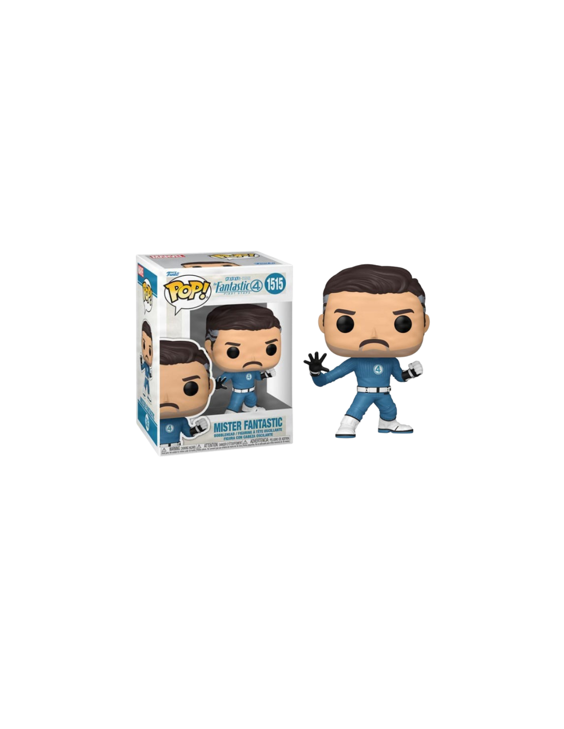 Marvel Los Cuatro Fantásticos Primeros Pasos Mister Fantastic (1515). Figura de colección de la marca Funko Pop! · Fabricada en vinilo y con una cabeza de tamaño desproporcionado como principal rasgo distintivo. · Mide unos 9cm. de altura aproximada. · Se entrega en una caja de cartón y plástico rígido transparente. · Con licencia oficial de MARVEL LOS CUATRO FANTASTICOS.