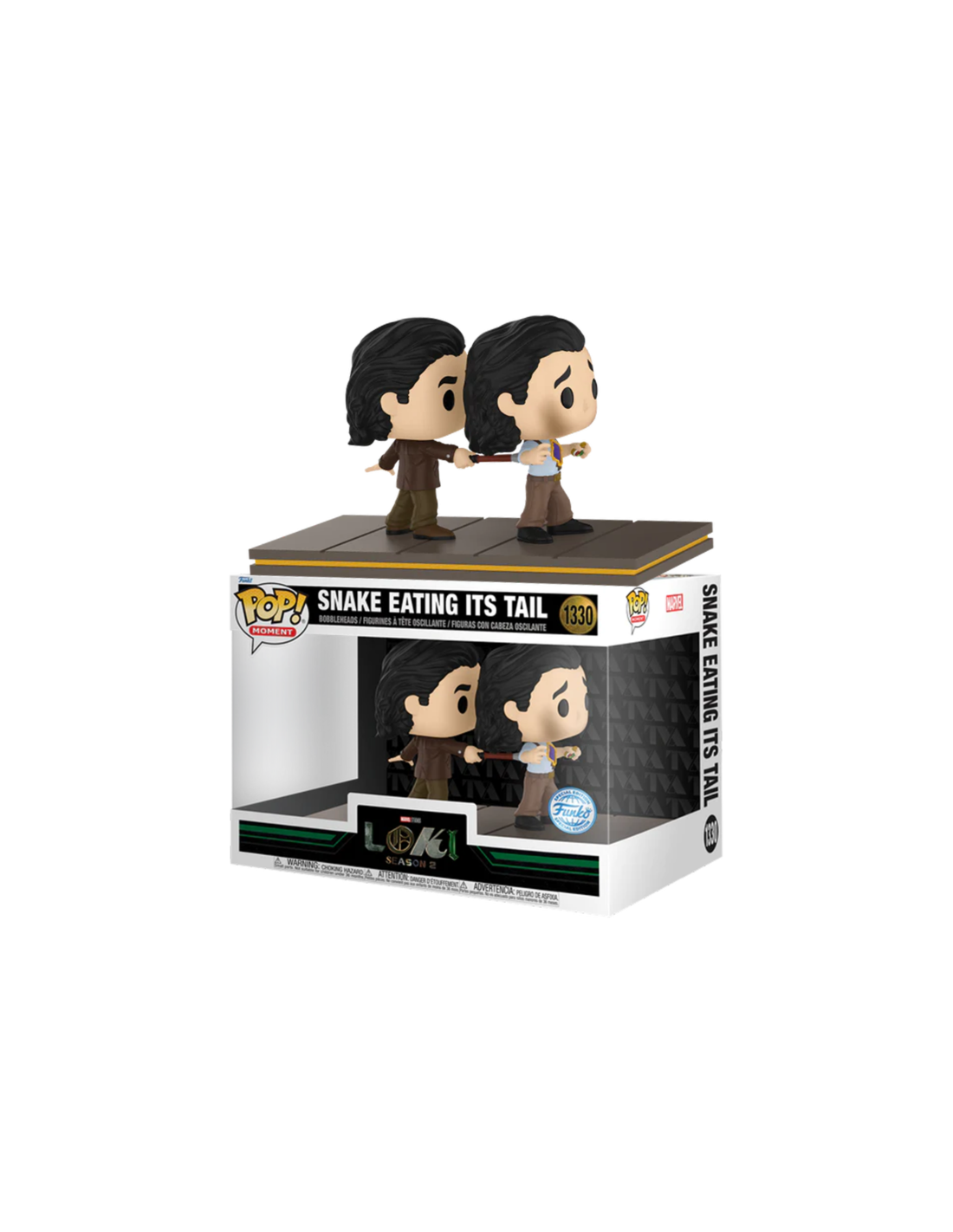 Marvel Studios Loki Snake Eating Its Tail (1330). Figura de colección de la marca Funko Pop! · Fabricada en vinilo y con una cabeza de tamaño desproporcionado como principal rasgo distintivo. · Mide unos 9cm. de altura aproximada. · Se entrega en una caja de cartón y plástico rígido transparente. · Con licencia oficial de MARVEL.