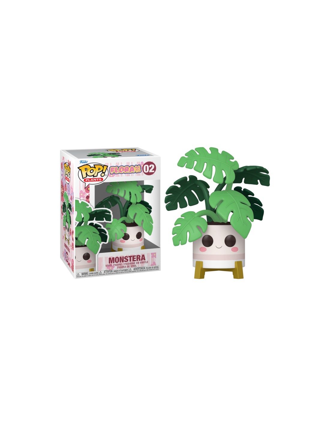 Flora Monstera (02). Figura de colección de la marca Funko Pop! · Fabricada en vinilo y con una cabeza de tamaño desproporcionado como principal rasgo distintivo. · Mide unos 9cm. de altura aproximada. · Se entrega en una caja de cartón y plástico rígido transparente. · Con licencia oficial de FLORA.