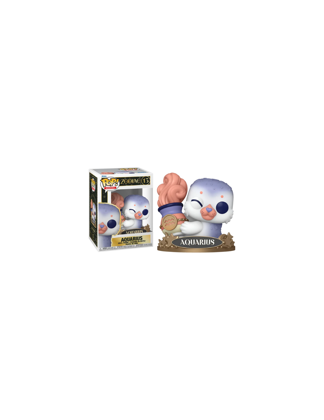 Zodiac Acuario (13). Figura de colección de la marca Funko Pop! · Fabricada en vinilo y con una cabeza de tamaño desproporcionado como principal rasgo distintivo. · Mide unos 9cm. de altura aproximada. · Se entrega en una caja de cartón y plástico rígido transparente. · Con licencia oficial de ZODIAC.