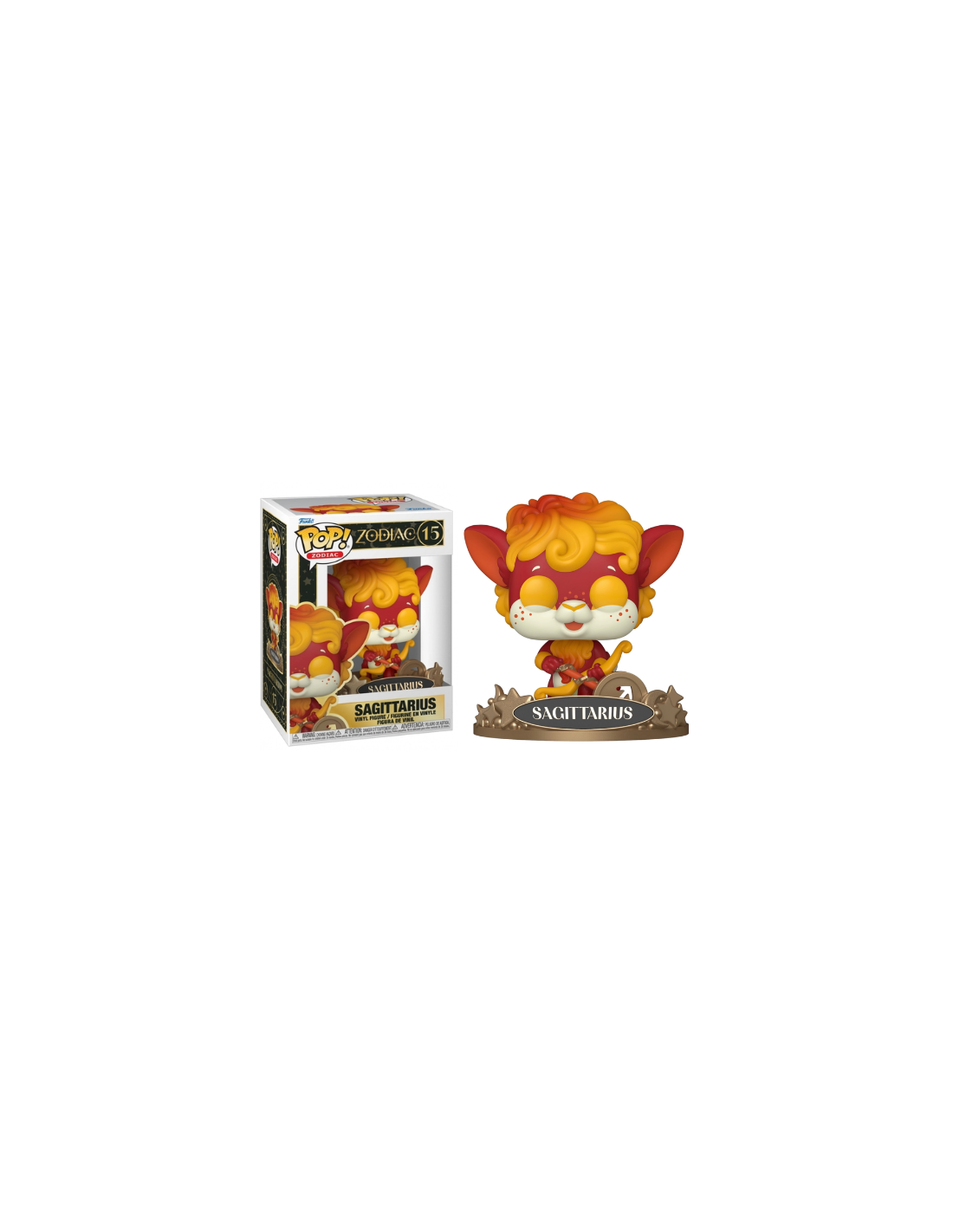 Zodiac Sagitario (15). Figura de colección de la marca Funko Pop! · Fabricada en vinilo y con una cabeza de tamaño desproporcionado como principal rasgo distintivo. · Mide unos 9cm. de altura aproximada. · Se entrega en una caja de cartón y plástico rígido transparente. · Con licencia oficial de ZODIAC.
