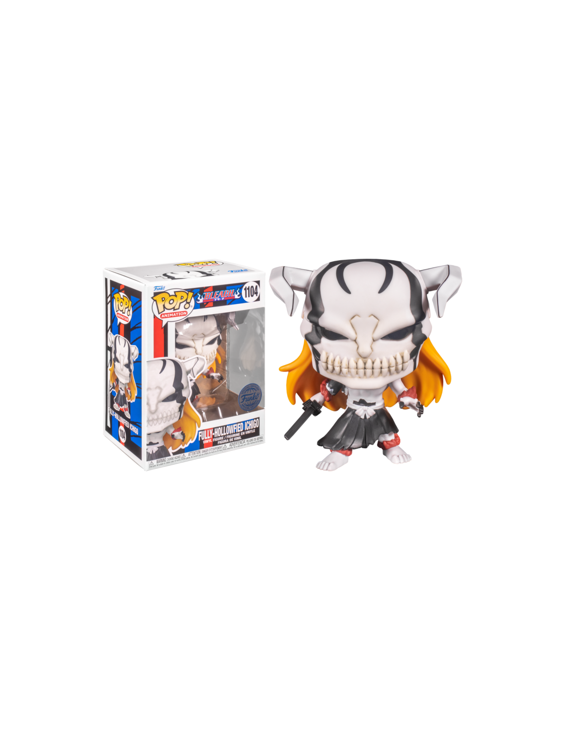Bleach Fully-Hollowfied Ichigo Special Edition (1104). Figura de colección de la marca Funko Pop! · Fabricada en vinilo y con una cabeza de tamaño desproporcionado como principal rasgo distintivo. · Mide unos 9cm. de altura aproximada. · Se entrega en una caja de cartón y plástico rígido transparente. · Con licencia oficial de BLEACH.