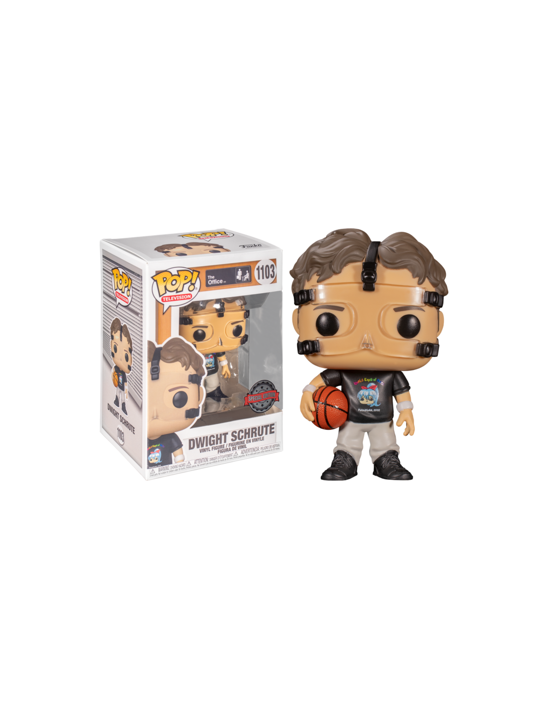 The Office Dwight Schrute Exclusive (1103). Figura de colección de la marca Funko Pop! · Fabricada en vinilo y con una cabeza de tamaño desproporcionado como principal rasgo distintivo. · Mide unos 9 cm. de altura aproximada. · Se entrega en una caja de cartón y plástico rígido transparente. · Con licencia oficial de THE OFFICE.