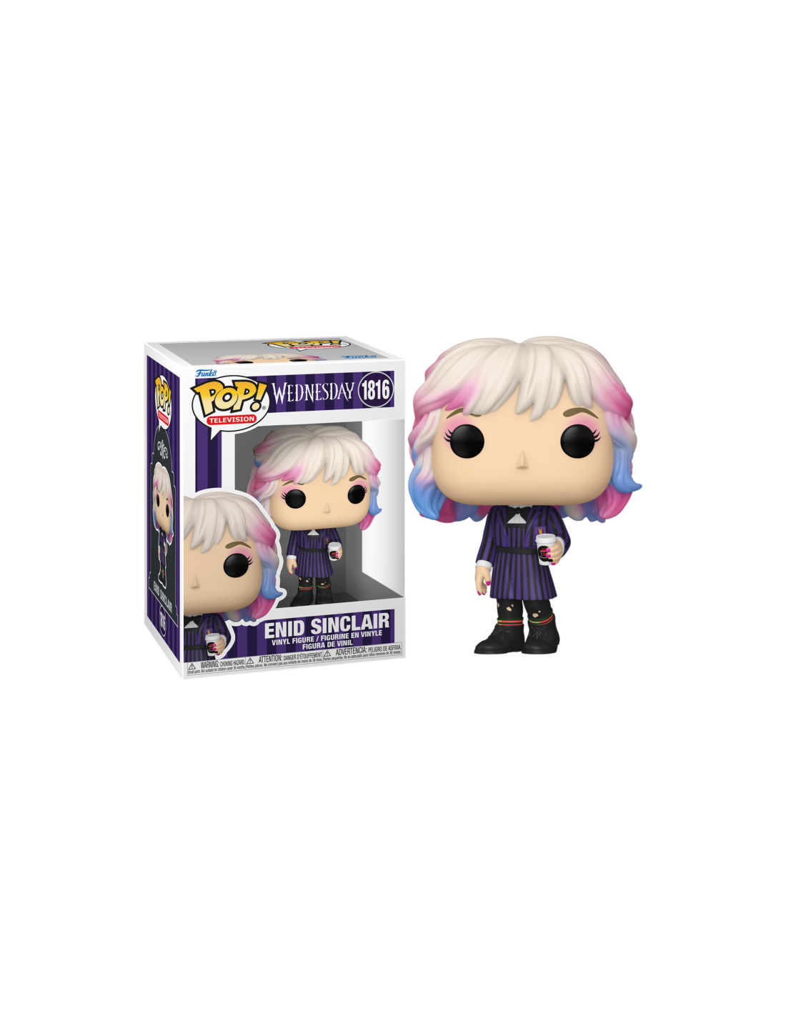 Wednesday (Miercoles) Enid Sinclair (1816). Figura de colección de la marca Funko Pop! · Fabricada en vinilo y con una cabeza de tamaño desproporcionado como principal rasgo distintivo. · Mide unos 9 cm. de altura aproximada. · Se entrega en una caja de cartón y plástico rígido transparente. · Con licencia oficial de WEDNESDAY.