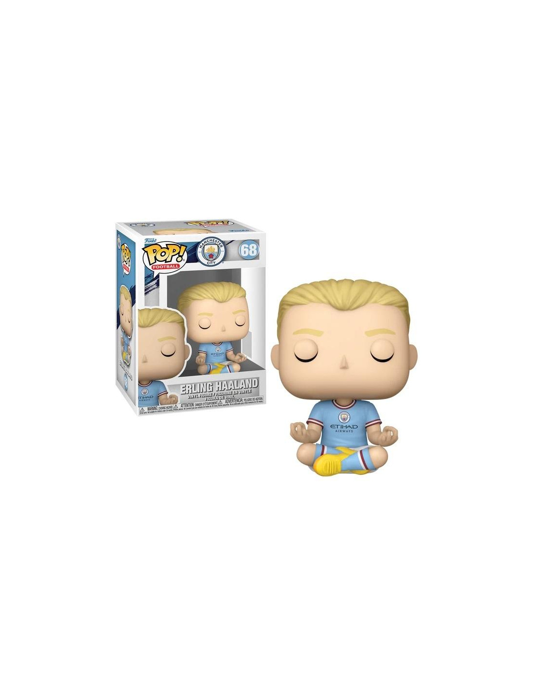 Manchester City Erling Haaland (68). Figura de colección de la marca Funko Pop! · Fabricada en vinilo y con una cabeza de tamaño desproporcionado como principal rasgo distintivo. · Mide unos 9cm. de altura aproximada. · Se entrega en una caja de cartón y plástico rígido transparente. · Con licencia oficial de MANCHESTER CITY.